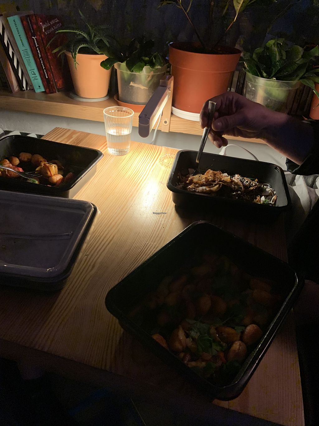 Tomato sauce, vegan cheese, seitan, garlic and sour cream pizza