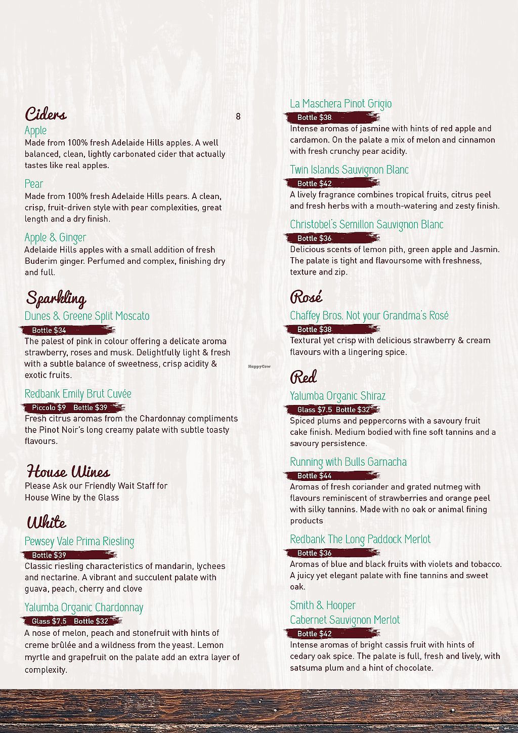Wine and Cocktail Menu