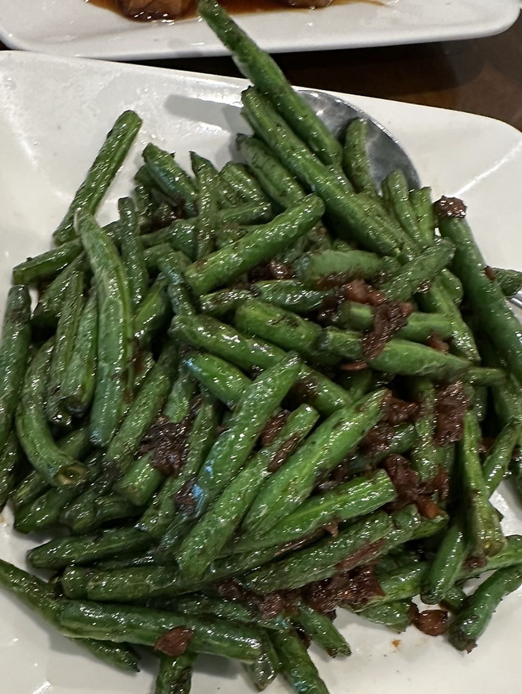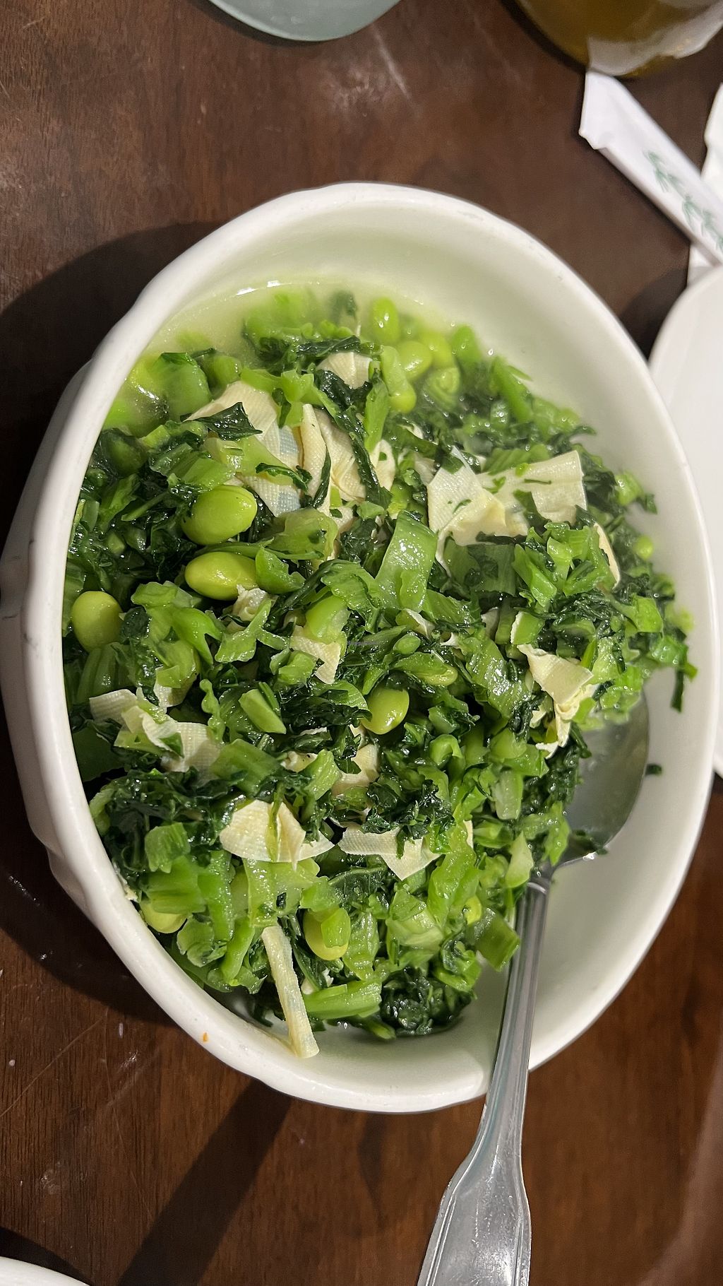 Wow, this place is so good! Everything that we tried really popped. It's so nice to not have to worry about animal products in our food. I almost refused the complimentary egg drop soup, because everywhere else it has chicken broth. Tried the crispy oyster mushrooms and mustard greens with tofu skin and fresh soy beans that stood out as our favorites.