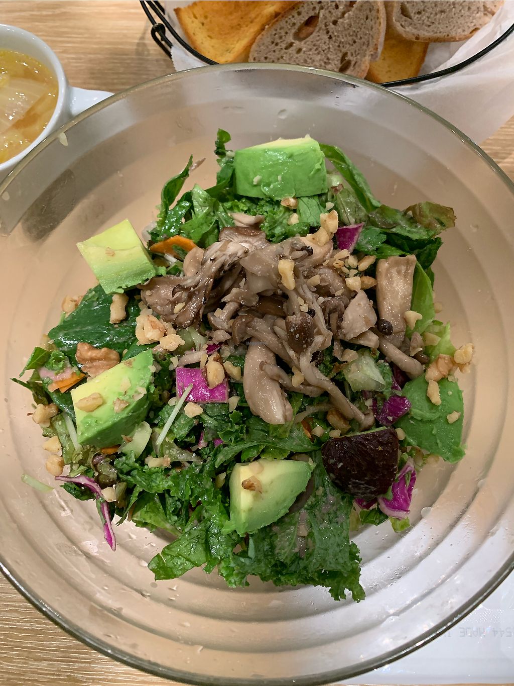 昼食のために行きました。パンはビーガンじゃないでした。ビーガンな食べ物はサラダだけでした。