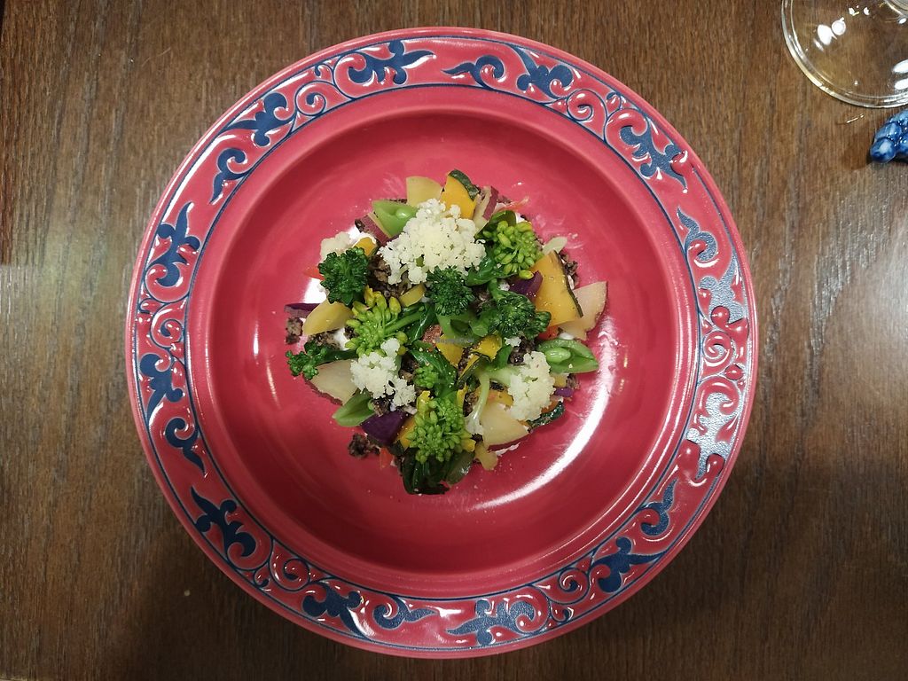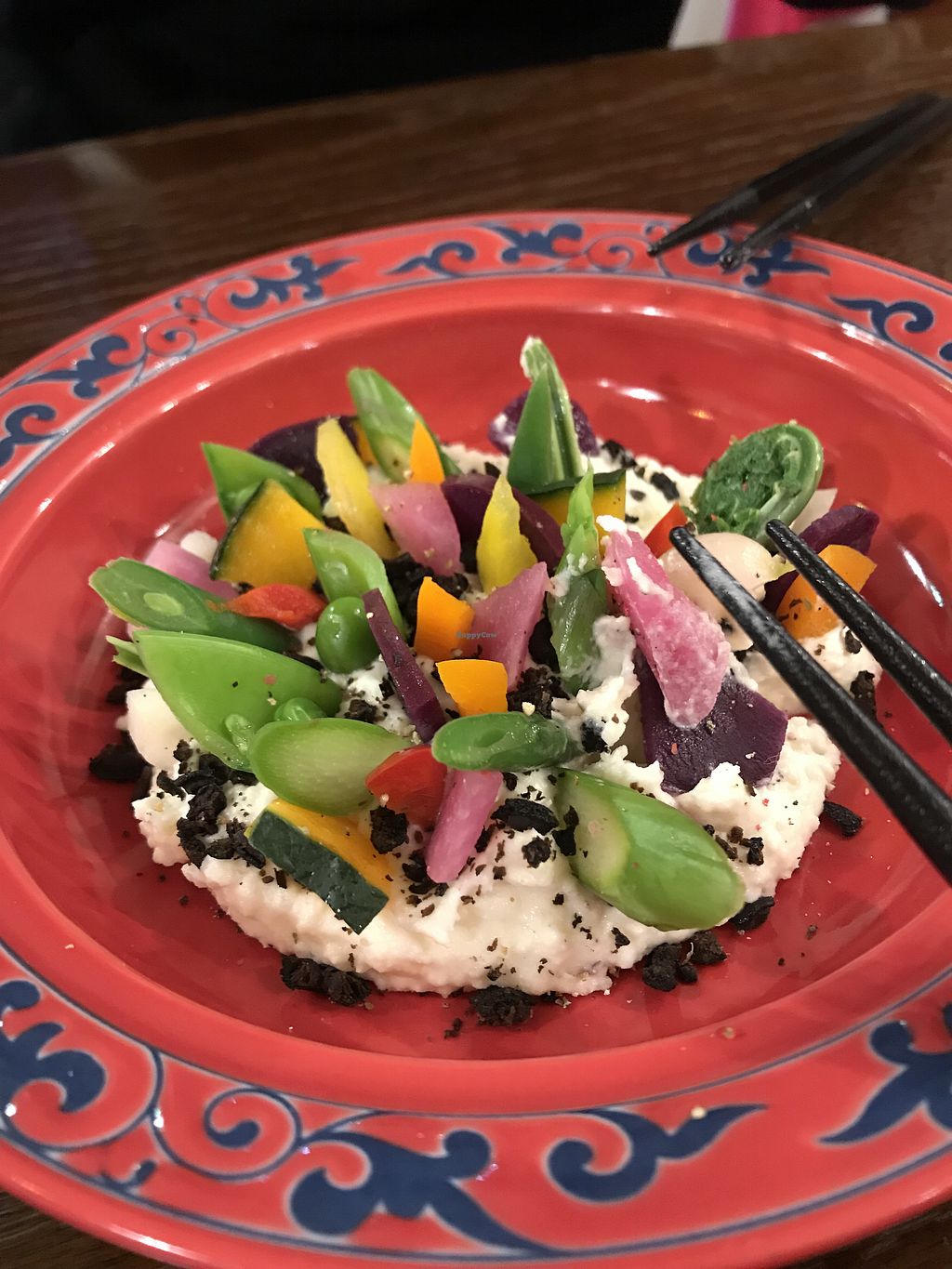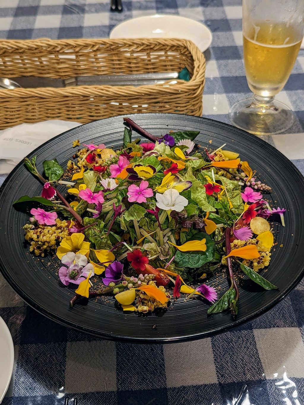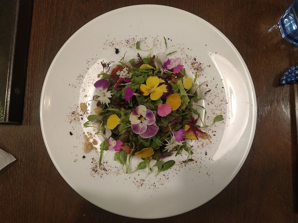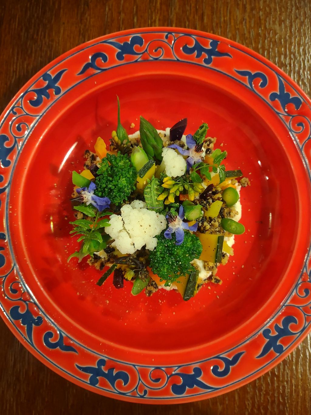 Amazing floral presentation. We tried the potato salad and a noodle dish. We were so happy to see vegan options in this small city!