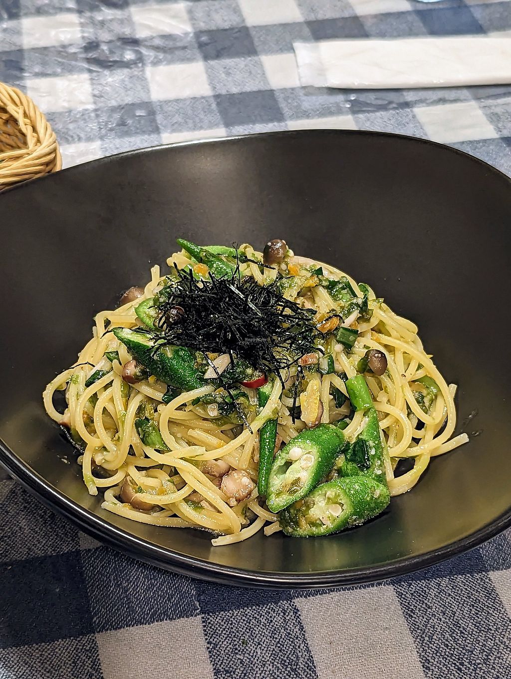 Je suis allée manger dans ce restaurant hier soir avec un ami. La dame nous a immédiatement demandé si nous avions des allergies ou un régime alimentaire particulier (et a cité vegan comme exemple!). Elle nous a ensuite présenté les plats que l'on pouvait manger sans crainte, et à fait de son mieux pour nous détailler les ingrédients en anglais. Nous avons choisi des pâtes avec une sauce aux algues : repas adapté spécialement pour les vegans puisque la recette initiale du menu contient des crevettes.