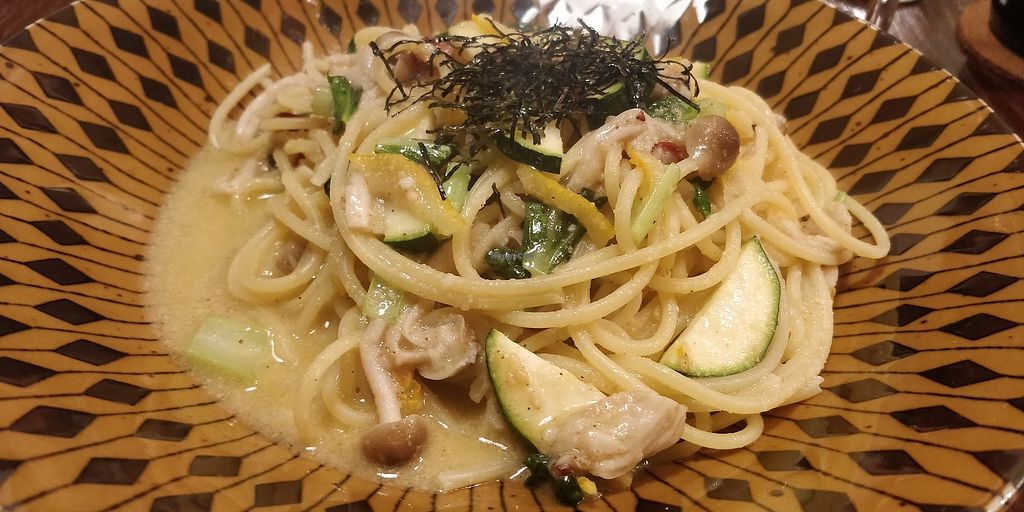 Lovely restaurant with some vegan options. Ask for details Was so nice to have vegan pasta after a long time without! Owners speak little English but are very eager to learn, are very open-minded, and are super friendly if you do get the chance to talk to them. It's a relatively popular restaurant though.