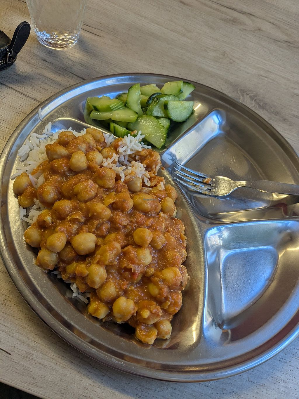 It’s an Indian cuisine so it’s full of great flavors. The staff was super friendly and explained everything to us. You can choose from two main courses and at least one of them is always vegan.