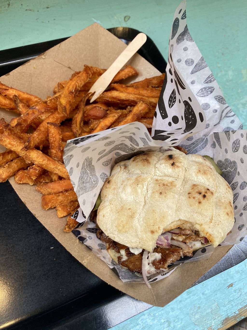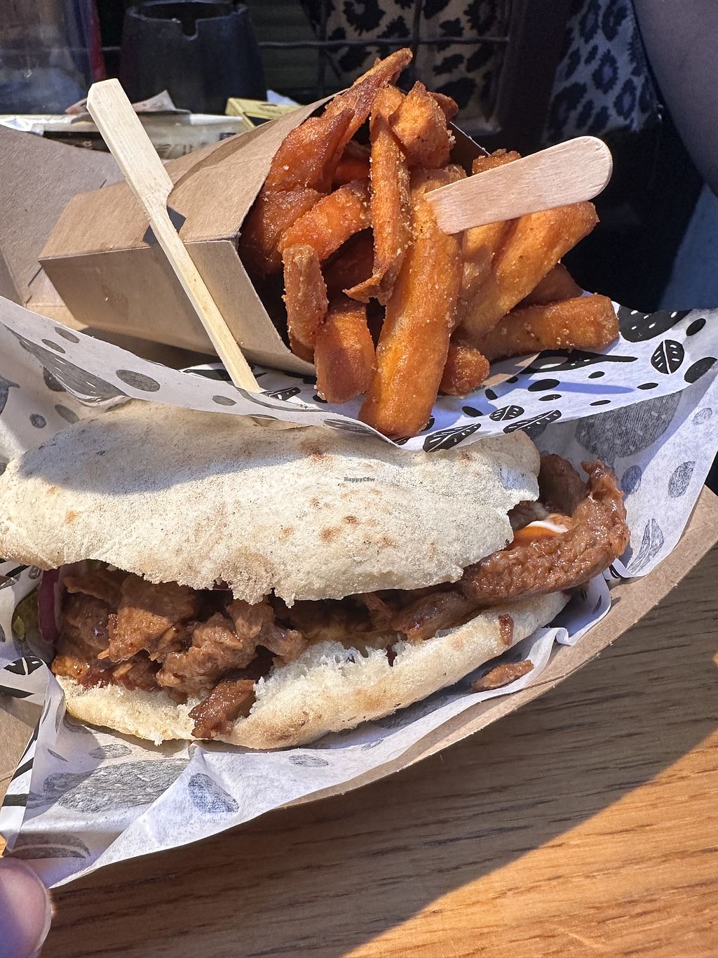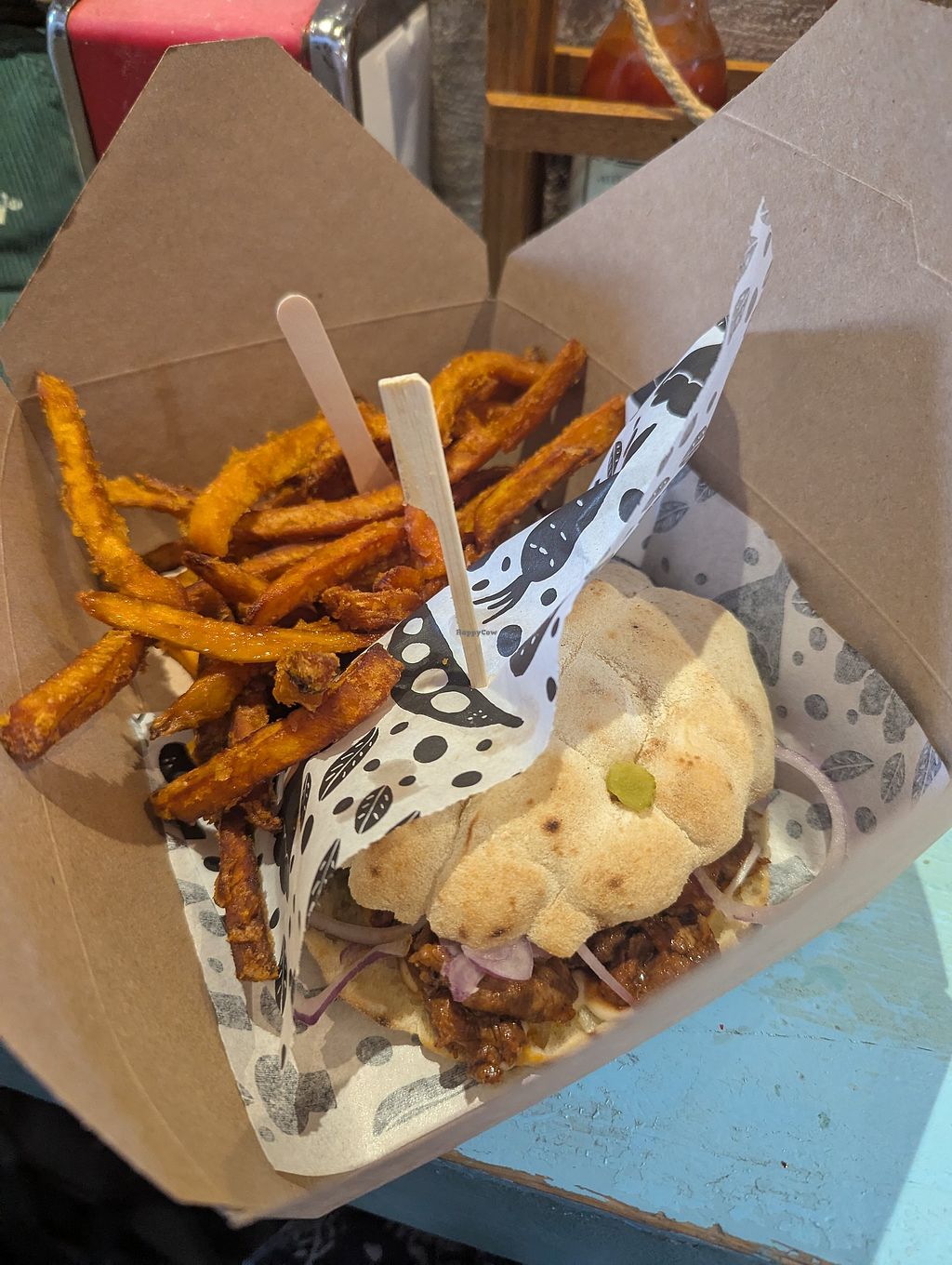The pulled beef sandwich with sweet potato fries