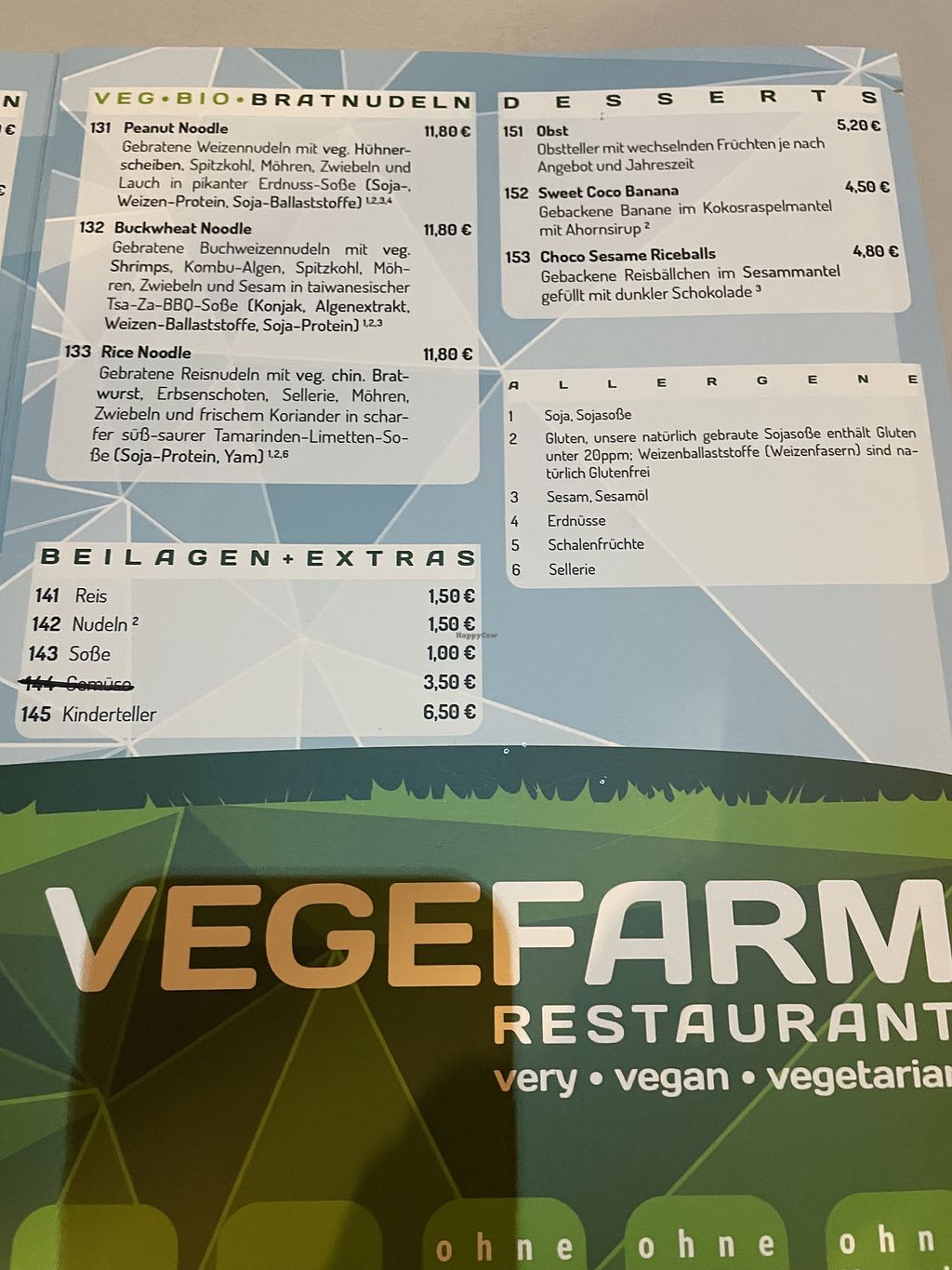 Ich war mittags im Vegefarm und hatte das Gericht "Sesam-Lachssteak" mit Champignons, Möhren und Zwiebeln in einer mit Knoblauch gekürzten Curry-Sauce und Reis. Das Essen war sehr lecker, gut abgeschmeckt und auf jeden Fall empfehlenswert. Besonders positiv ist die enorme Auswahl an unterschiedlichen Gerichten auf der Speisekarte und die Preise liegen mit EUR 15 inkl. Beilage in einem absolut fairen Rahmen. Die Bedienung war sehr freundlich und zuvorkommend, man fühlt sich gut aufgehoben. Die Einrichtung wirkt für meinen Geschmack etwas kühl und könnte gemütlicher sein, das gute Essen und der Service gleichen das aber aus. Bei meinem nächsten Besuch in Bremen komme ich sehr gern wieder ins Vegefarm.