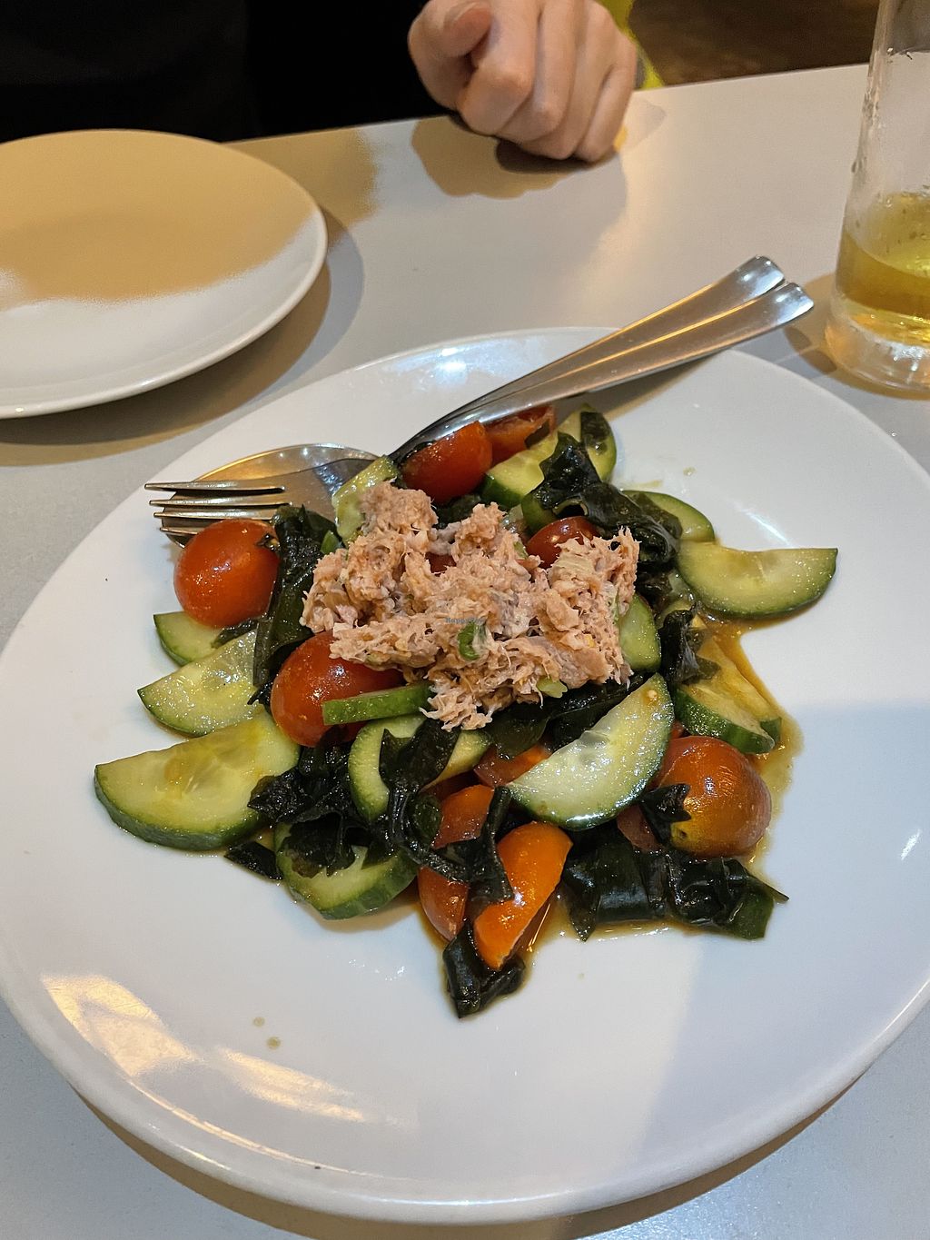 It was hard to choose from the extensive menu that is fully vegan. We decided to try the ‘Duck and broccoli in peanut sauce’, ‘rice paper springrolls’, ‘satay’, 2 udon noodle soups, and a seaweed salad. It was all lovely and some pleasantly surprising flavors. Like for instance the kimchi udon noodle soup. Very friendly owners/staff! Also, the restaurant is in a cute street with a park/playground across the street.