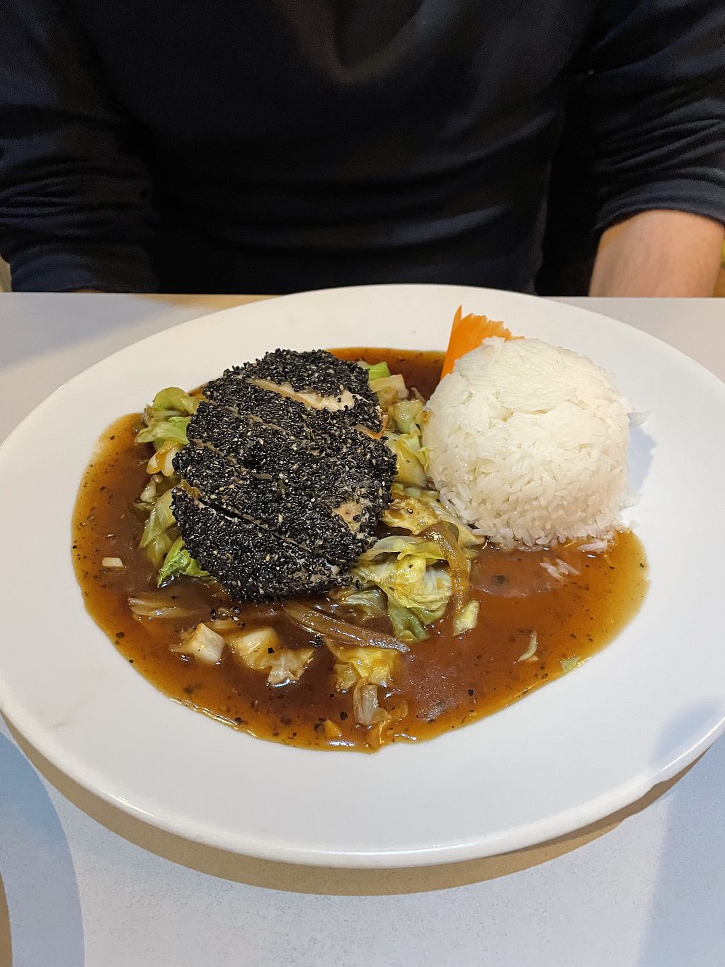 The food was delicious and there were many different meat options: fish, chicken, beef, pork, all vegan. The staff is very helpful and friendly.