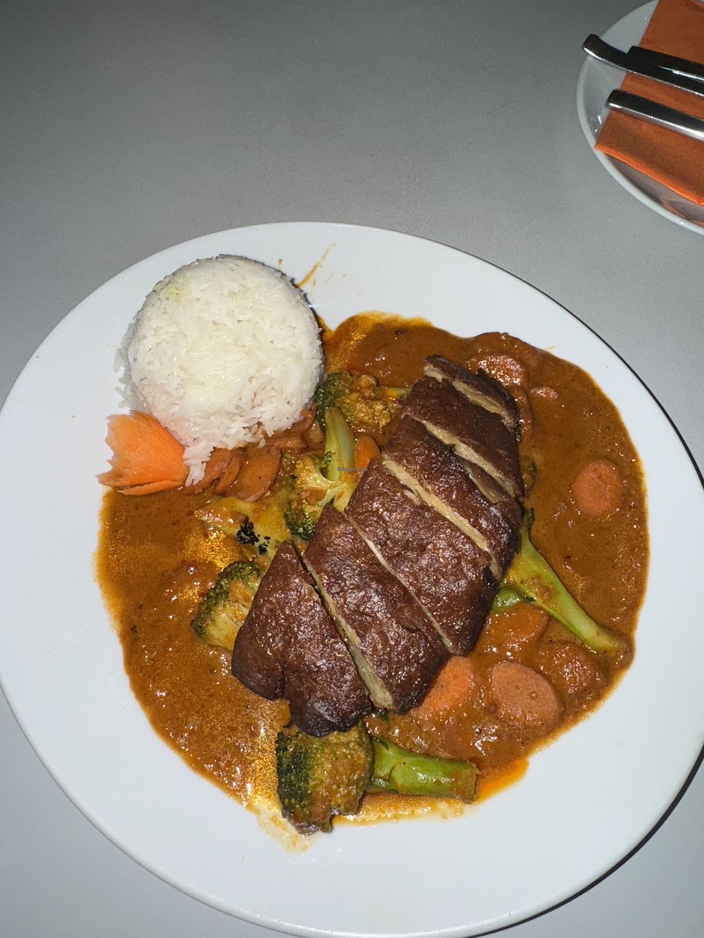 Mittagsmenüoption - gebratene Nudeln mit Schwein und Gemüse