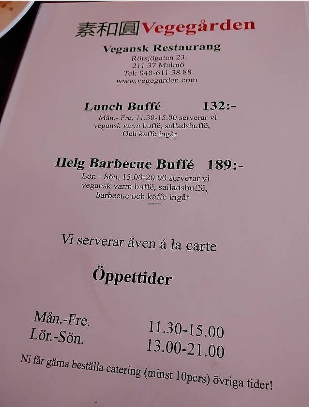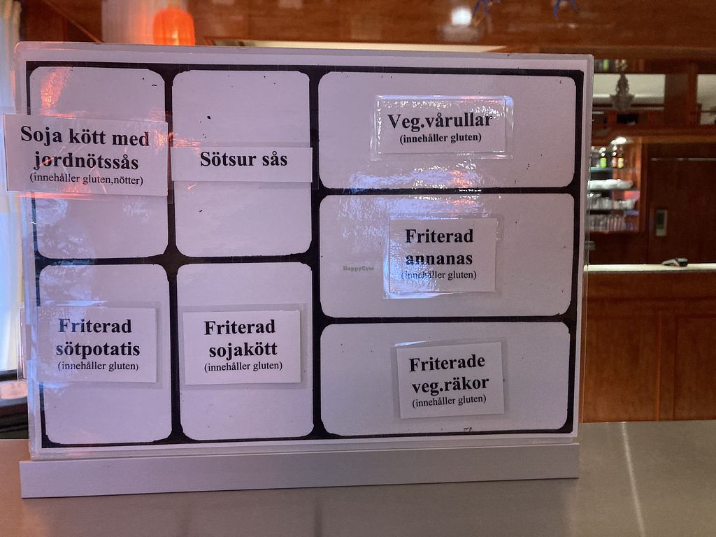 Asian style vegan food. Lunch time is buffet. Reported fully vegan as of 2010. Accepts cash payments. Please note that many businesses in Sweden are cashless. Open Mon-Fri 11:30-15:00, Sat-Sun 13:00-21:00.