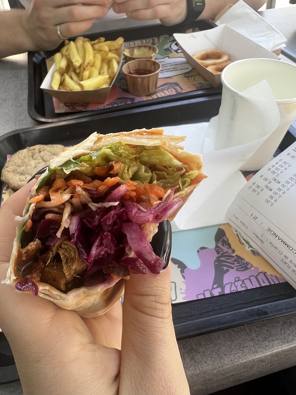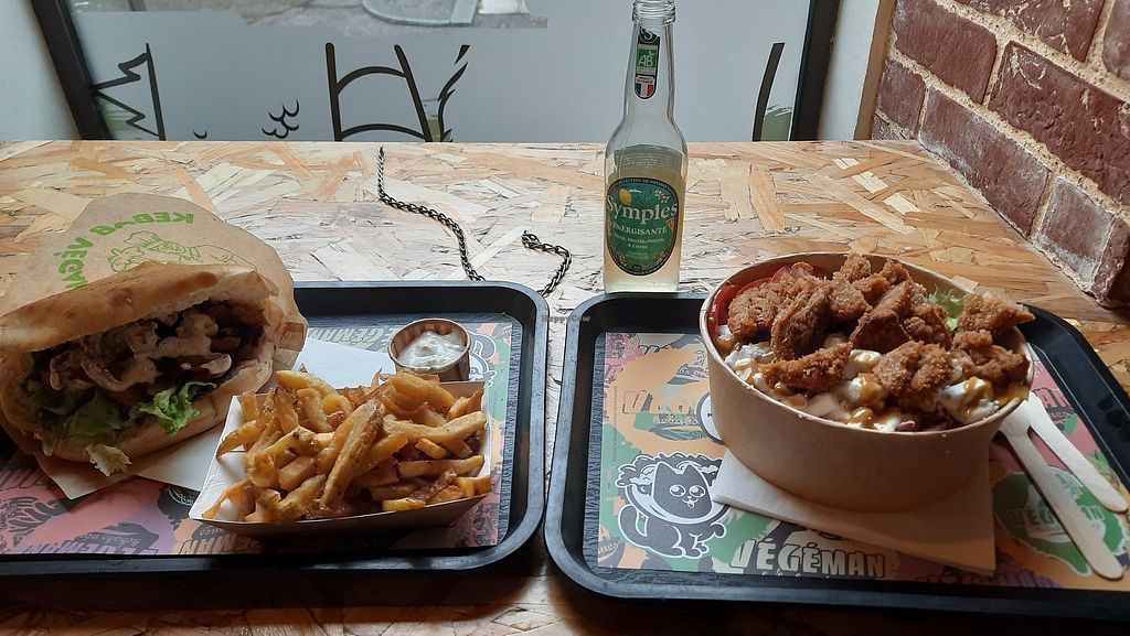 Ceaser salad + nugget (super delicious!), vegan kebab + fries