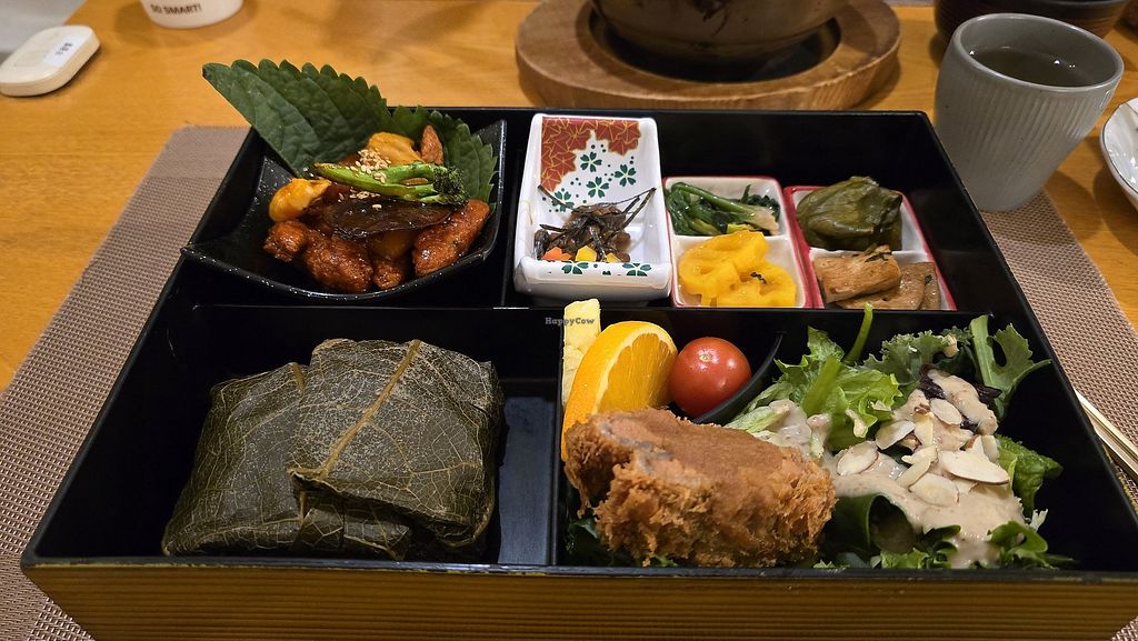 An all-vegan restaurant serving Temple style foods. Located on the 9th floor with a view of the sea. Open Mon-Sun 11:30am-3:00pm, 5:00pm-9:00pm. Closed every 2nd and 4th Mon. Last lunch order 2:20pm. Last dinner order 8pm.