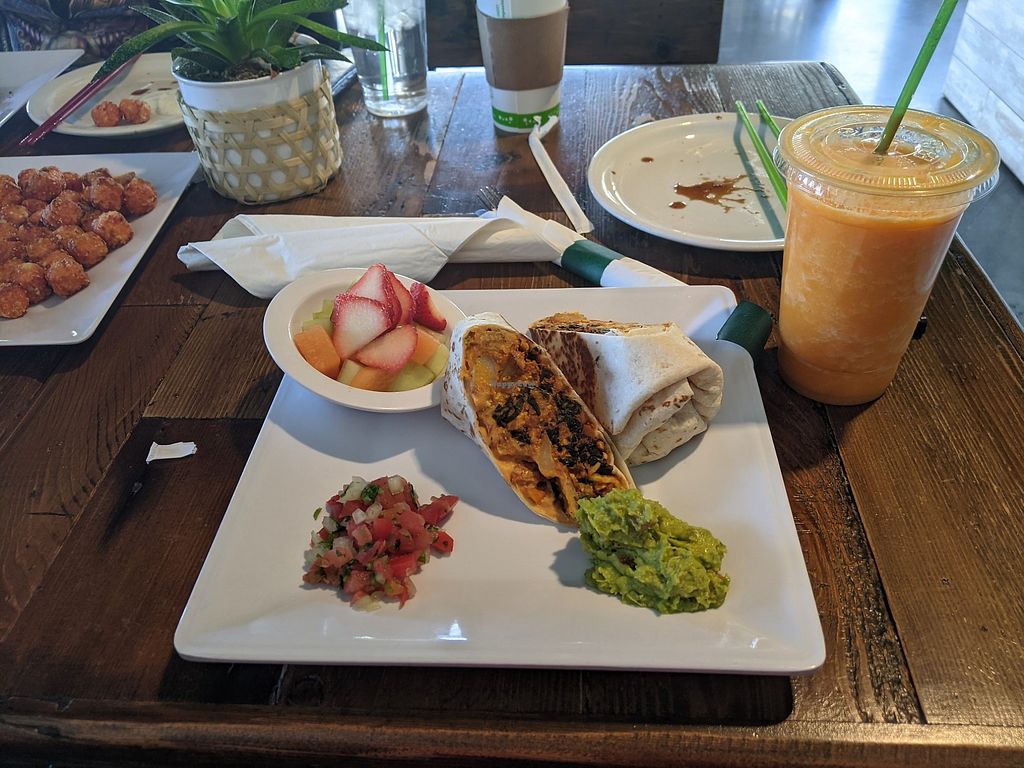 The Badass Vegan Burrito, Orange Burst smoothie, Loaded Sweet Potato T…