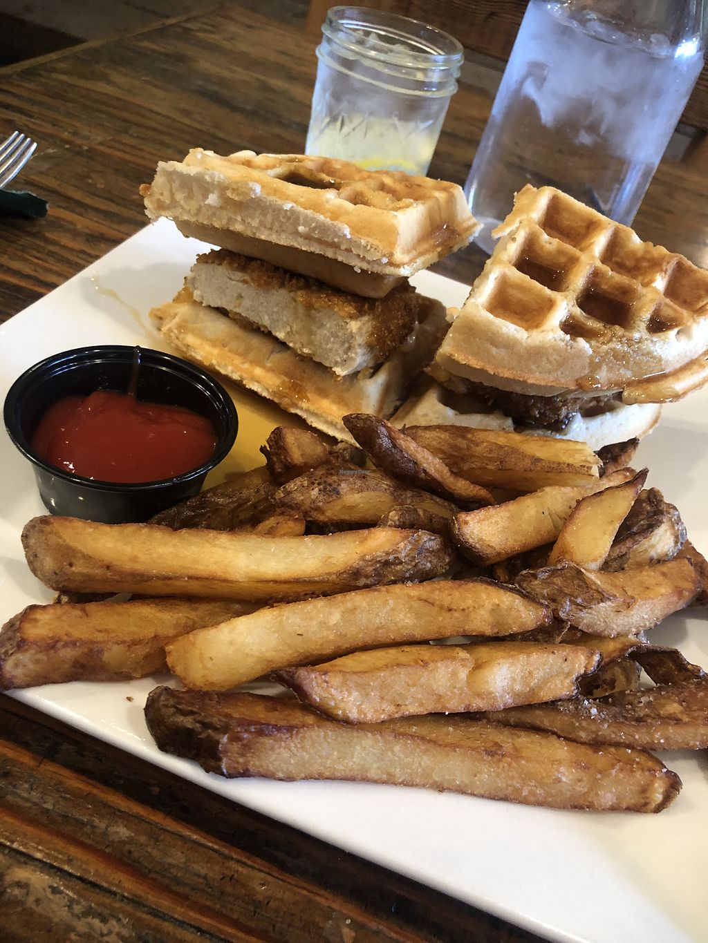 While everything should have been fantastic I was a bit underwhelmed. The chicken and waffles were good - waffle cooked to perfection with some gardien chicken nuggets and a savory sauce with jalapeños. I was expecting a sweet plate. They must be known for their cold brew because my French press coffee water wasn't hot enough to brew the grounds. Probably a fluke in ordering and wouldn't deter me from visiting again.
