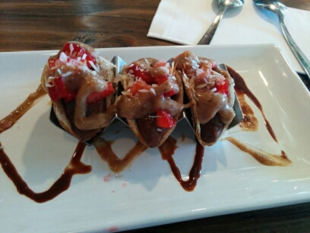 My first visit.... SUPER great food, service, people, atmosphere. The chocolate dessert tacos were amazing (but tiny - ok size by dessert time). The sweet potato quesadilla was SO tasty. Great concise menu - not overwhelming. What really stood out was the great vibe of EVERYONE working there - team players of joy. Ambiance is chill too! Way to go downtown Vegas!