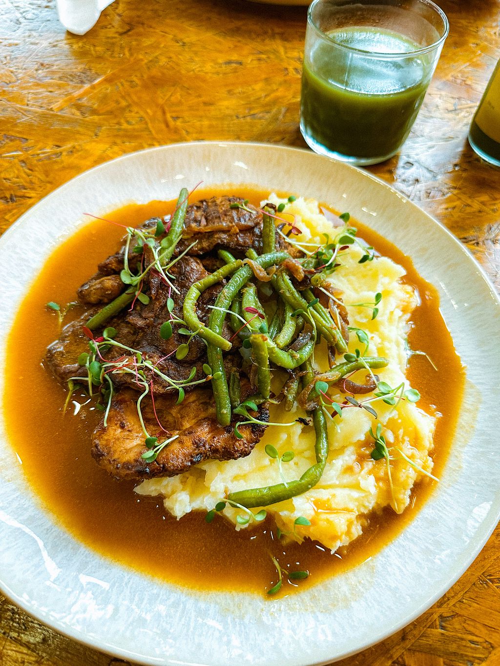 Vegetarian but offers several vegan items, including some both vegan and gluten-free. The meals are super tasty and creative. We will be coming back regularly!