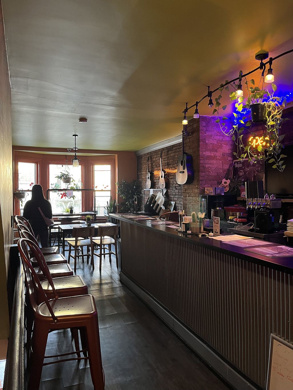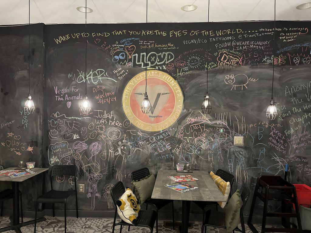 It’s so cute and cozy inside. There is sitting upstairs and towards the back. Cute chalk board to write on. Loved the vibe and the food was to die for #Veganuary