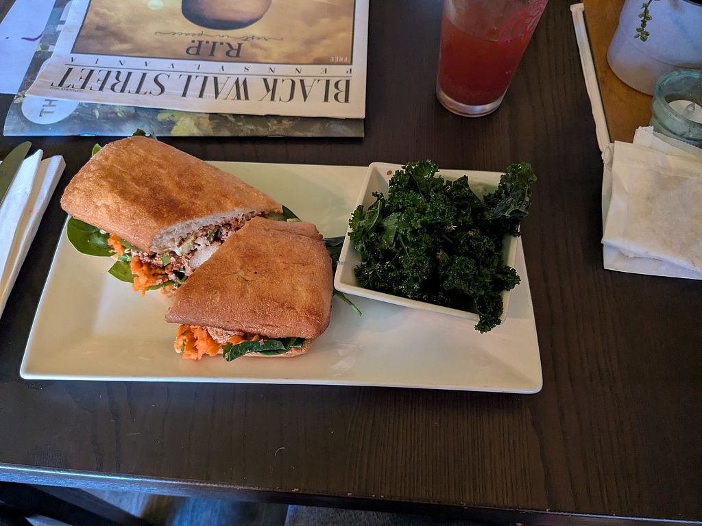 Fully vegan cafe and brewery. The Blackberry Lemonade is AMAZING. The cheesesteak was ok, but I’m from Philly so I’m picky. Would definitely come again.