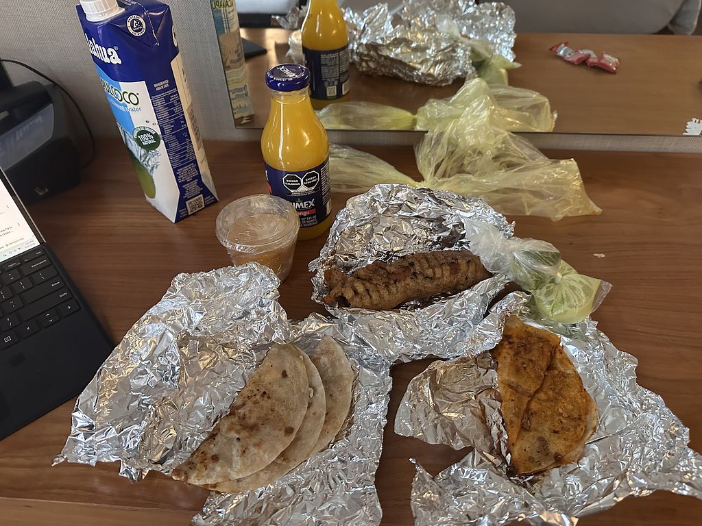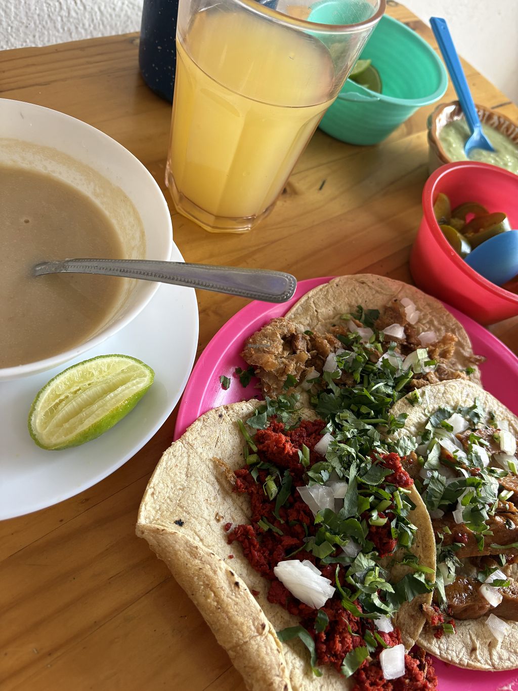 Read moreSin duda volvería a comer más tacos. Incluso el agua del día de maracuyá fue rico! Son gente muy amable y les deseo mucho éxito en crecer su negocio. Además tienen una perrita bonita en la taquería. Mi única sugerencia sería que el menú podría distinguir entre los tacos con ingredientes hechas en casa (como el chorizo de quinoa que era buenísimo) comparado con los tacos con ingredientes que compran. Ambos son válidos y todo tipo de cliente puede tener sus preferencias, pero a mí me gustaría saber cuáles hacen ellos en casa y probar todos estos sabores.