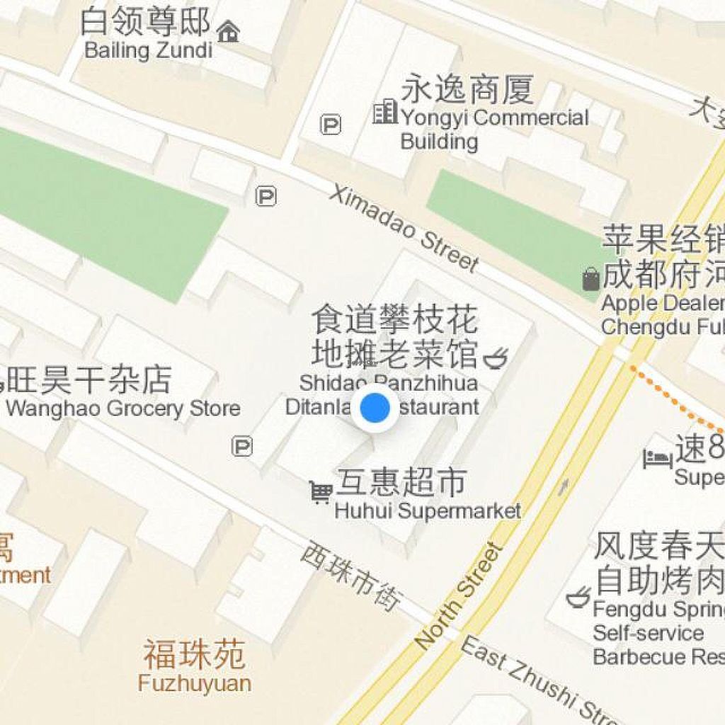 At 成都市北大街88号. Vegetarian restaurant located opposite the TianShengYi Center and is not visible from the street but inside a circular shopping courtyard. Specializes in Sichuan cuisine; even relatively mild dishes could be spicy. The menu is in Chinese, but it includes photos of some dishes. A number of the dishes contain mock meats. 2018 NOTE: maybe closed/shut down - please verify and let HappyCow know.