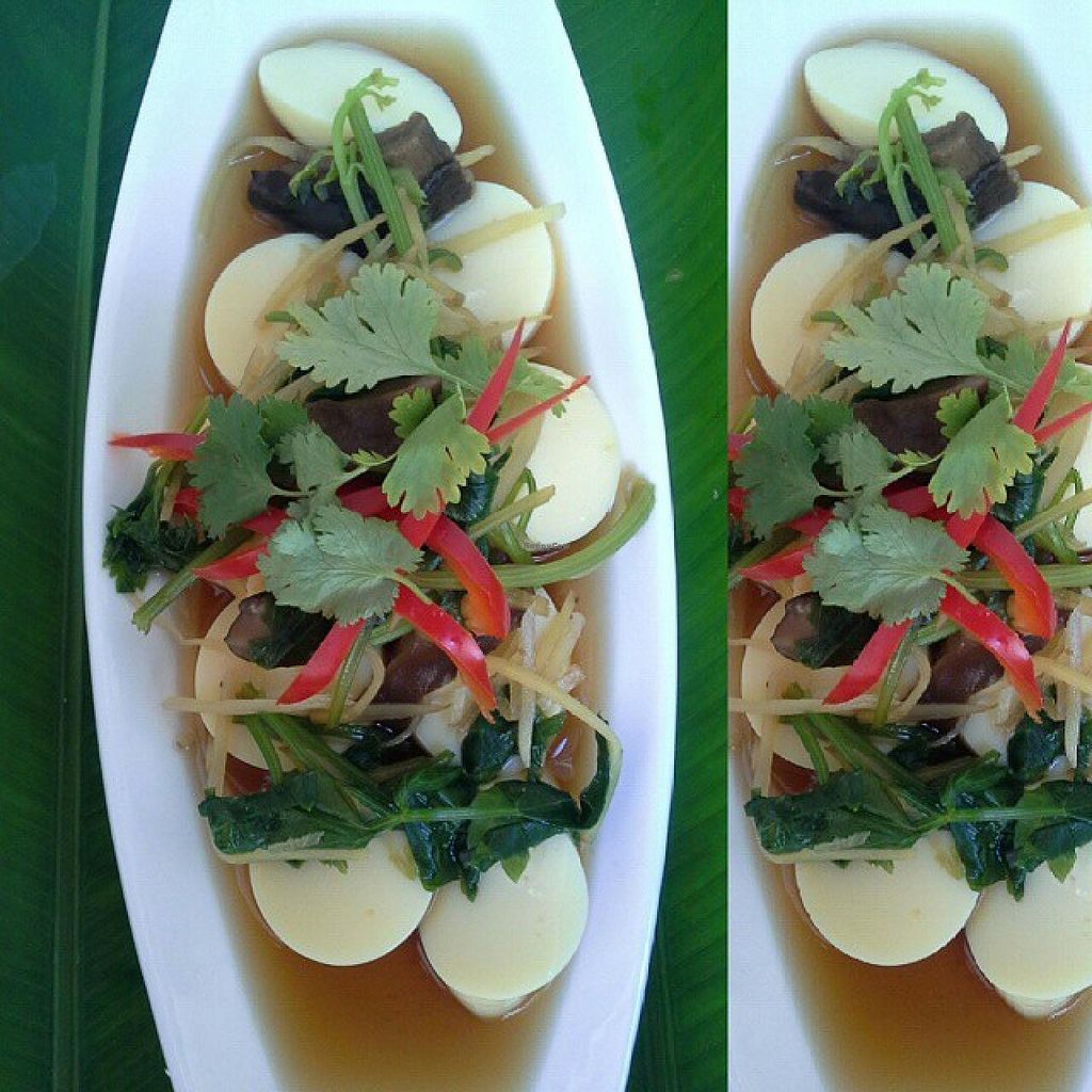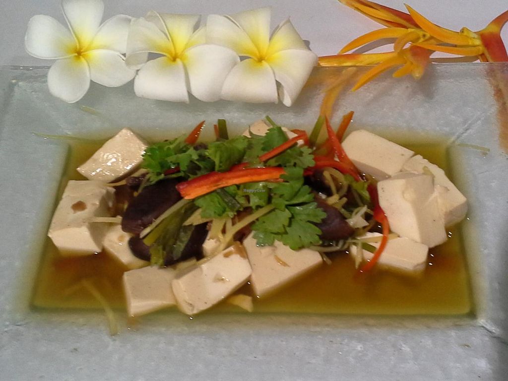 Steamed Tofu with herbs 60 baht.