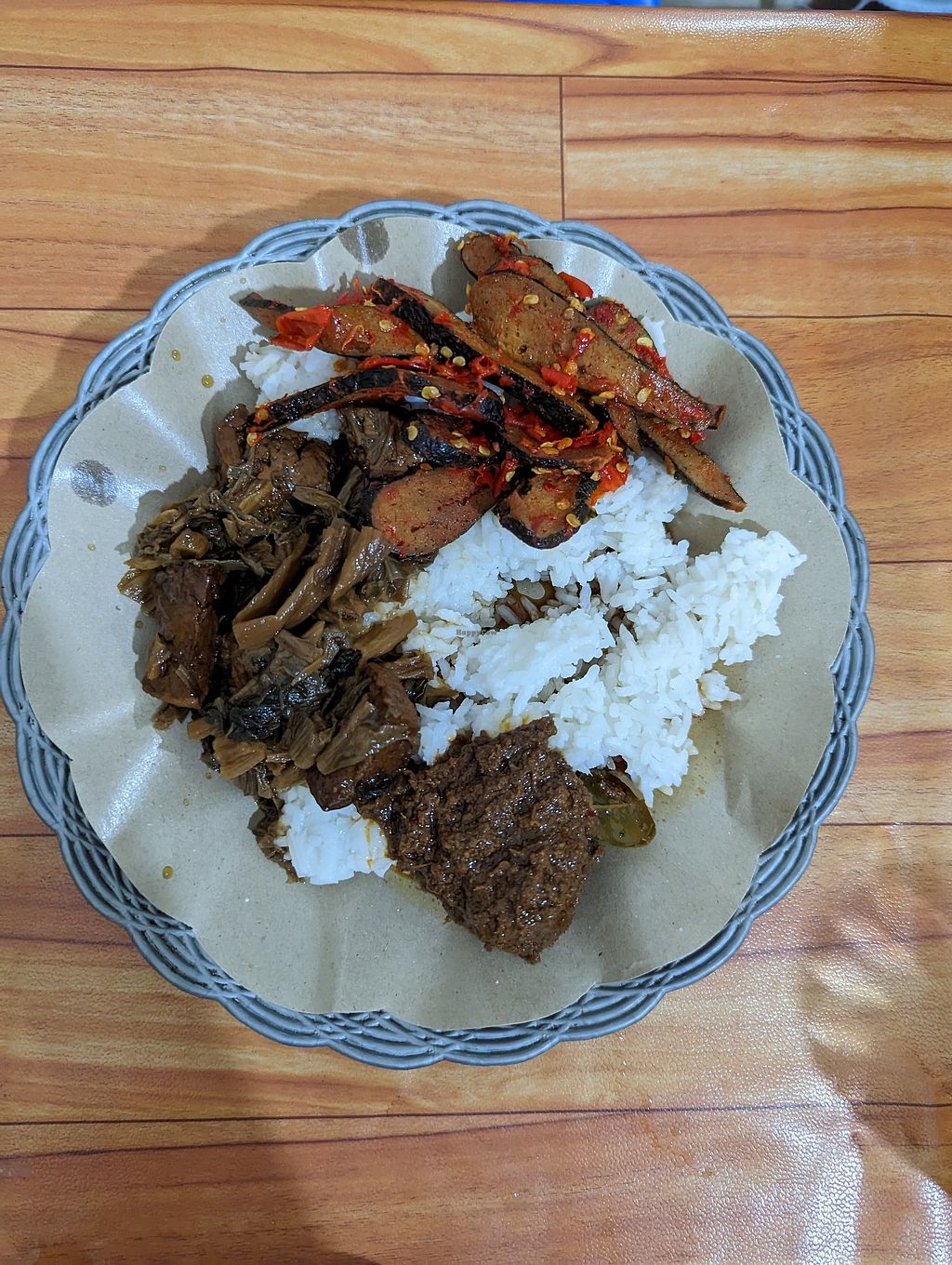 The food was delicious. We ordered tofu, some vegetables and the rendang, with rice. Very good price. I really recommend the mushroom rendang (it's a bit spicy) and the owner is a very attentive and friendly man