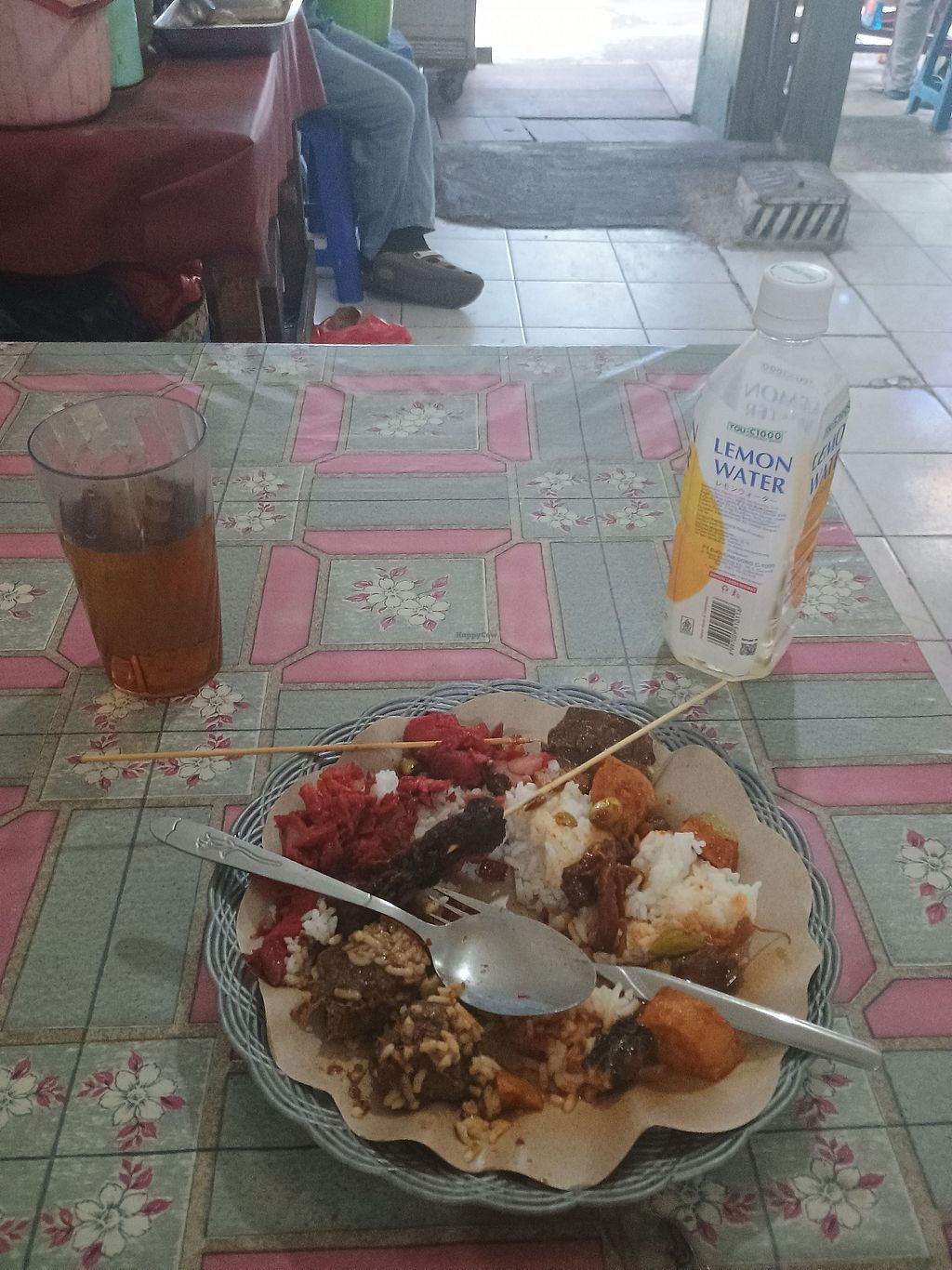 Going to “the vegetarian restaurant” in Chinatown is not just about eating the best vegan food in town. The owner is so kind an also explained me interesting things about Jakarta. His family is all vegan and is his wife who normally prepares the food. The plate consists on what is available that day, in my case a beet and carrot soup with mock meatballs, and a mix of vegetables, rice, mock homemade meat (made of mushrooms). Everything delicious. The textures were surprisingly good.