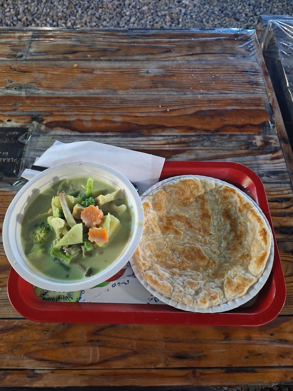 Unique vegan thai sausage was nice and mildly spicy, the green curry was a bit bland but the roti that came with it was delicious