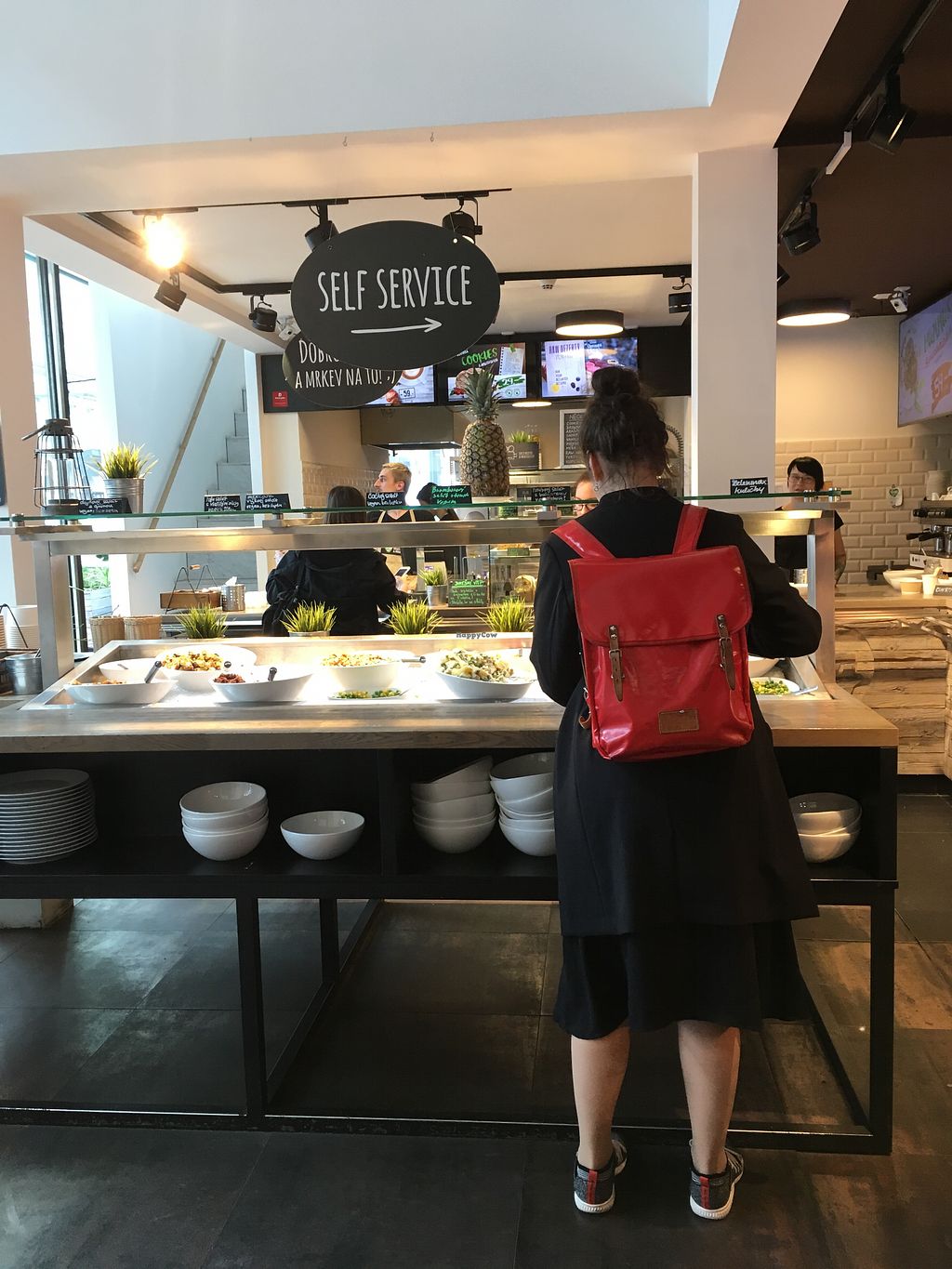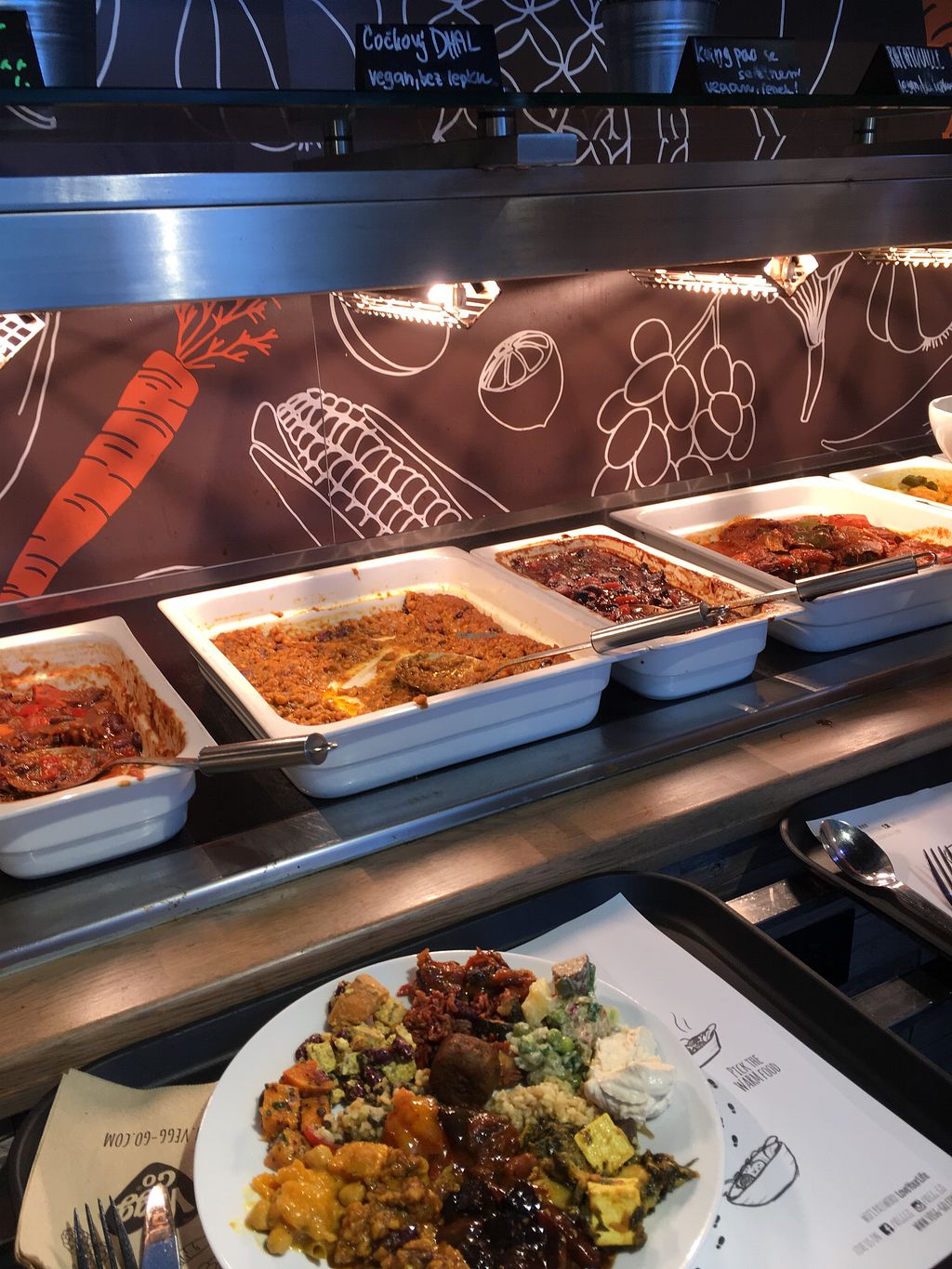 Vegetarian and vegan buffet. More than 90% of the dishes are vegan from what I saw the day I went there. Not the best buffet I had in Prague but everything was really good. Especially the dishes with beans and chickpeas. Very friendly staff ! Lore expensive than other buffets in town.