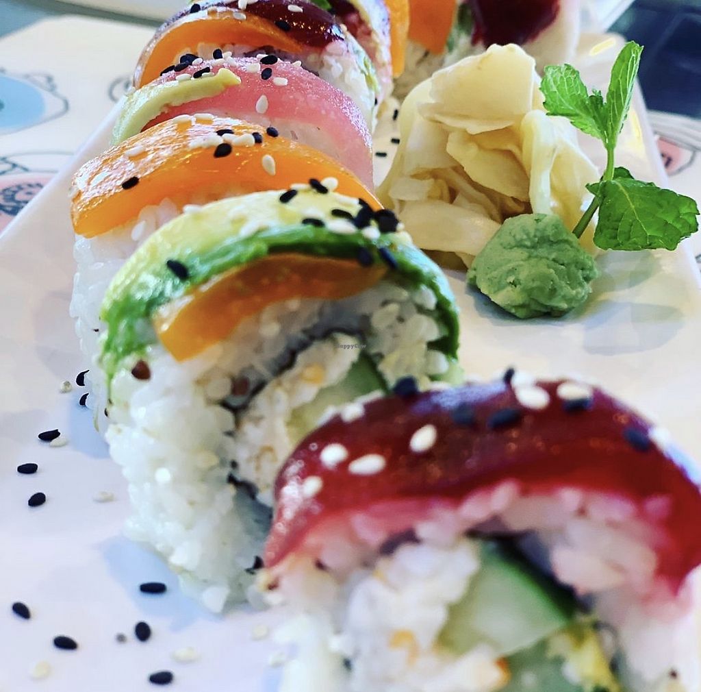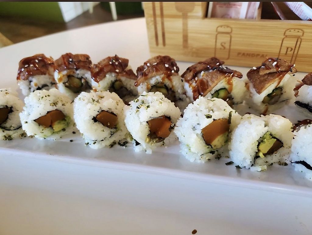 Our all time favorite Vegan place!! So if you haven't been to VeggiEAT yet...DO IT! They have a location in Henderson and one in Summerlin...and honestly it is so worth the drive. Everything is 100% vegan and they have some incredible sushi!! (which is what we normally order) Today we tried a couple Bahn Mi sandwiches. My man had the "steak" cold sandwich and I had the Philly "cheese". Both were soooo delicious!! We also had some tofu Singapore noodles 😍🤤 and our go to appetizer, the sashimi spring roll. The owner is so sweet and personable and the atmosphere in both locations is so calming and zen like. We LOVE it here!