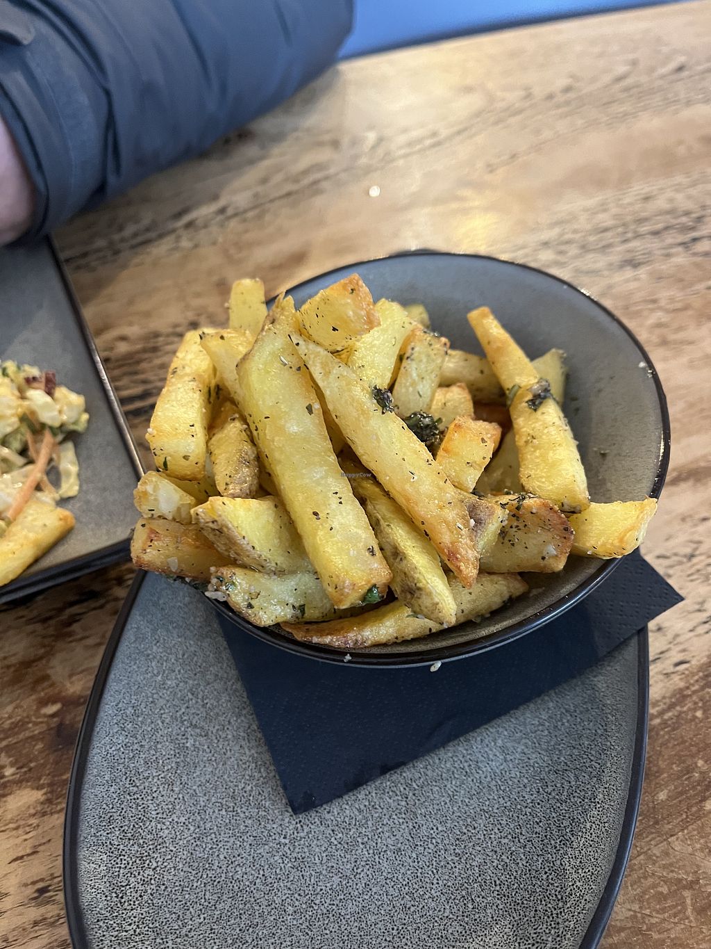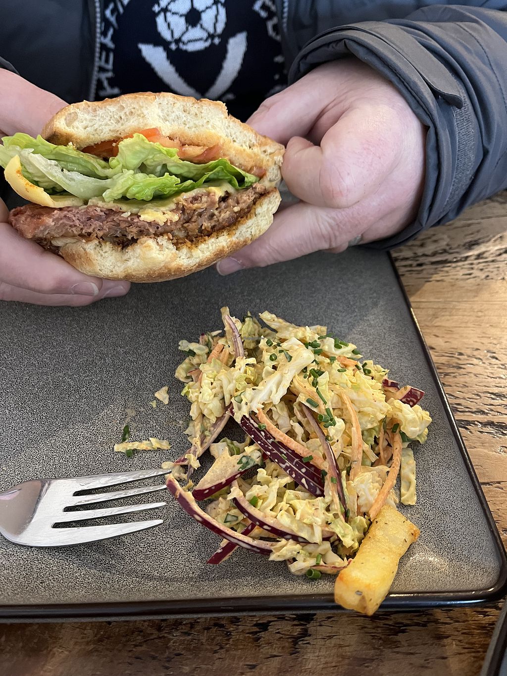 Lemon ch*ck*n burger, slaw and fries