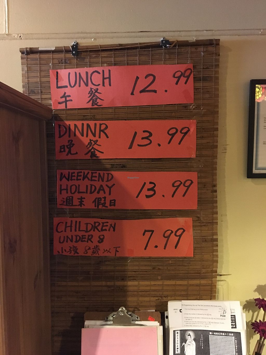 Great vegan choices. There is a lunch/ dinner all-you-can-eat menu. Lunch is 12.99 CD- Dinner us 13.99 CD