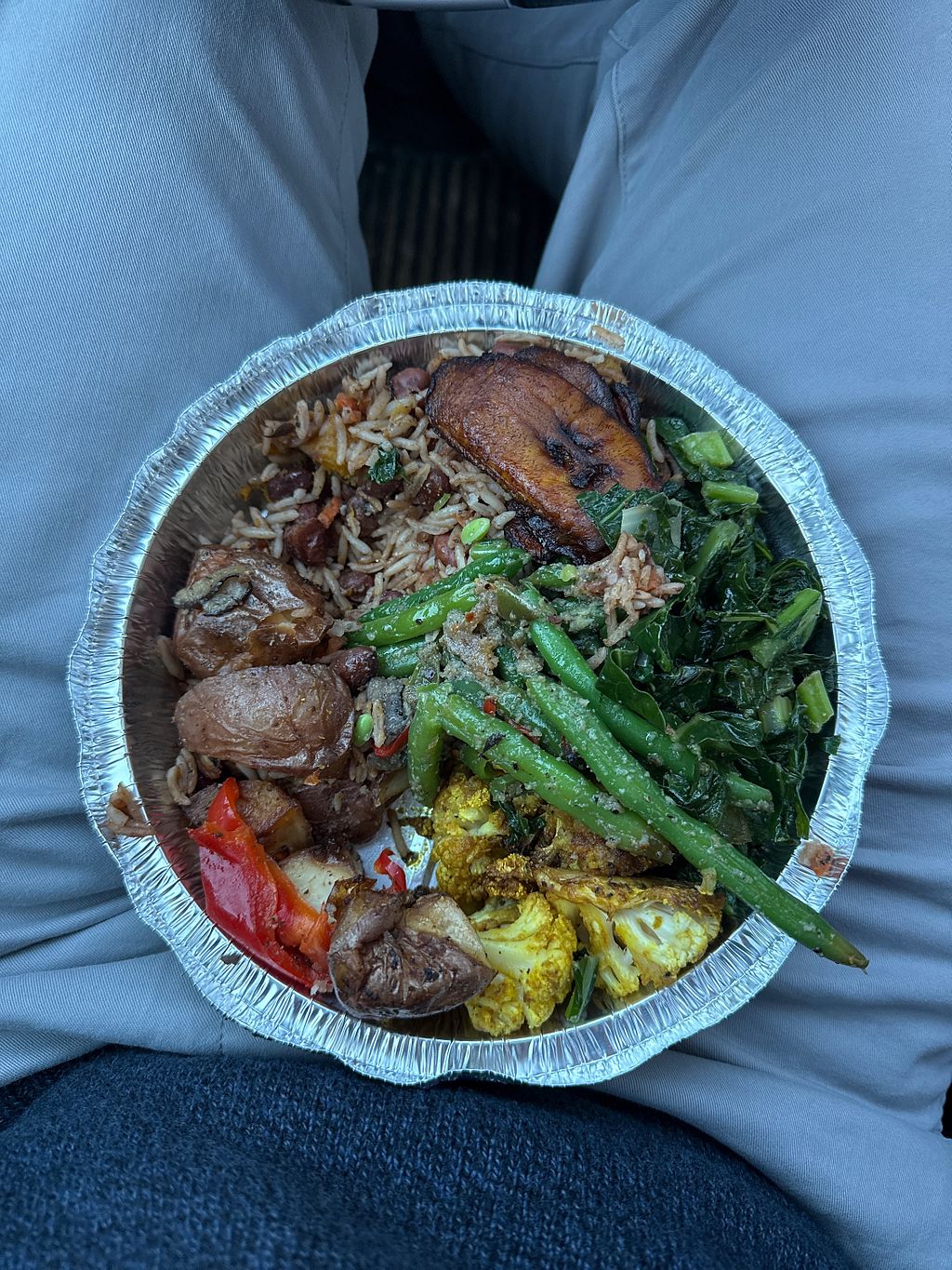 I loved the fact that they have a bakery and make fresh bread, roti, patties, and desserts daily. The selection ofvegannfood is amazing. The Mac n cheese, the lo mein, the chickn on a stick, collard greens and plantains were amazing.