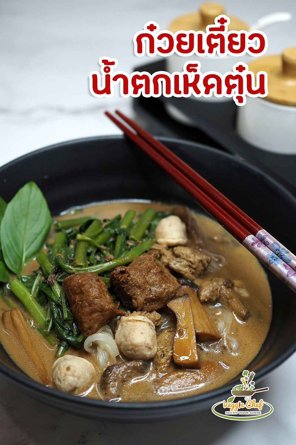 Stir-fried Rice Noodle topped with chinese broccoli and Mushroo…