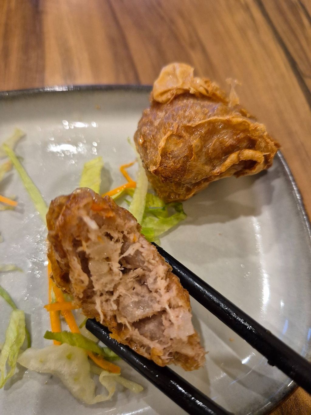 Although the chilli oil steamed wontons were delicious, each of the approximately 10 wontons only had a very small amount of (fake meat) filling, like about half a teaspoon full. I would prefer to have less wontons but more filling in each one. The chilli oil was very spicy so be careful of that if you don't like very spicy things.