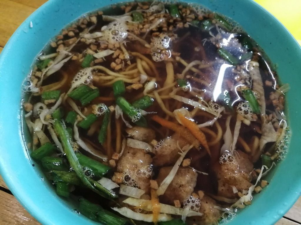 One of the bestsellers is a soup called 'La Paz Batchoy'. Batchoy is famous in the area because it is traditionally made with pork guts, chicken guts, and beef guts (You don't want to know! Look it up here: https://en.wikipedia.org/wiki/Batchoy). Veggie Delight's version has absolutely no meat. They only put vegetarian meat substitutes, which may contain gluten. The noodles are made with eggs and other ingredients. They have vegetarian versions of other local Filipino food, such as sisig, valenciana, and lomi. Their fruit shakes are made with cow's milk, but they will use soy milk if you ask them. They also sell veggie burgers, which don't taste too bad. Prices are very affordable. Friendly staff.