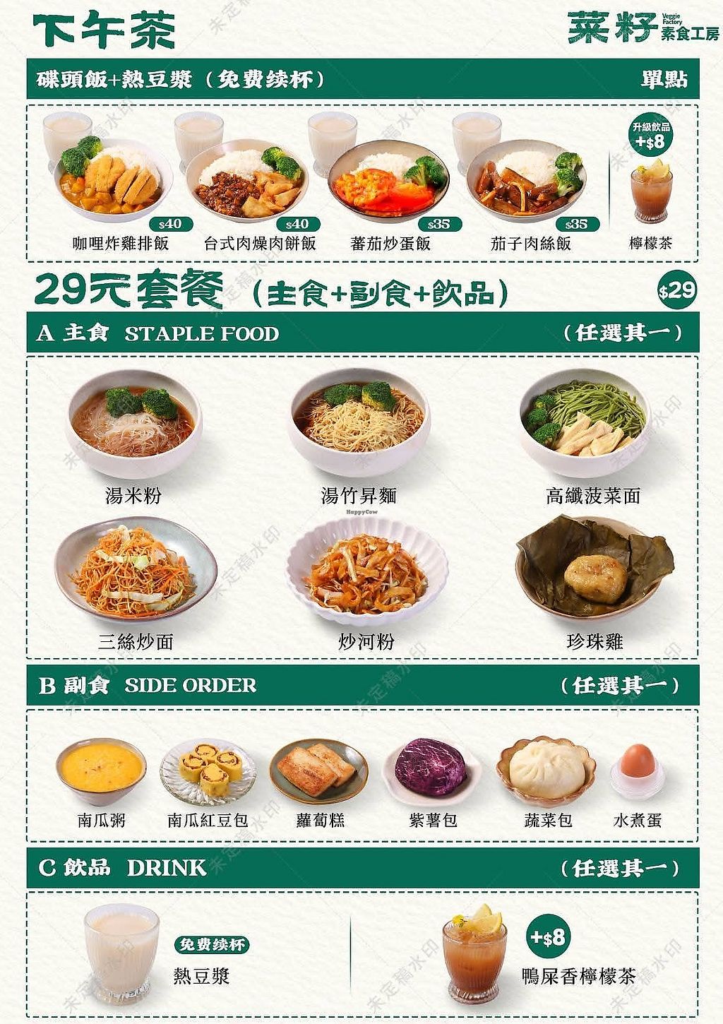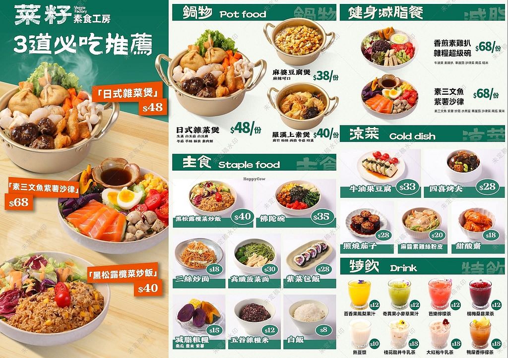 Vegetarian eatery serving local and Asian-style cuisine. The menu features rice plates, hot pots, and noodle dishes. Vegan options include the Japanese mixed vegetable pot, Buddha bowl, and Taiwanese-style minced meat rice. Side dishes such as teriyaki eggplant and fried mushrooms are also available. Open Mon-Sun 11:00am-9:30pm.