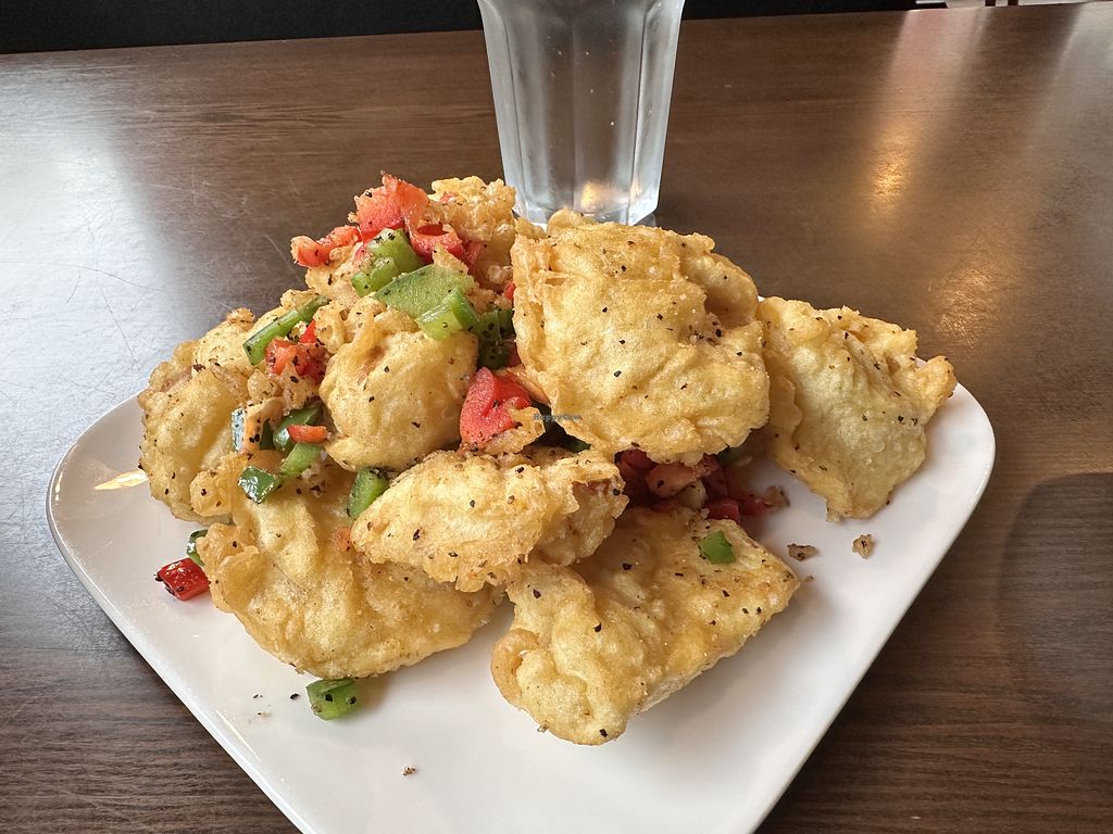 Sweet and sour soy protein, spring roll, and brown rice (lunch special…