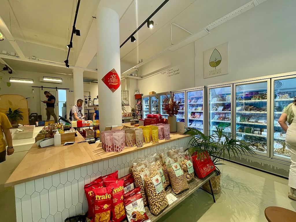 Little clean shop with mostly vegan european and asian stuff. Gorgeous cheese, diep fried food, noodles, tofu and sweets. All products are vegan unless they are marked on the price tag otherwise (eg with a symbol "containig milk"). The staff is very friendly and happy to help.