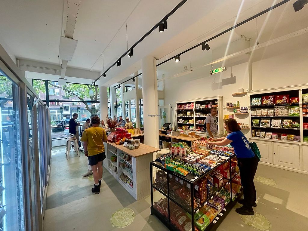 Rotterdam needed a fully veg grocer. This one is run by a lovely lady who is very willing to help you out during shopping. They offer many known and unknown brands of plant foods. They also offer veggie animal food!