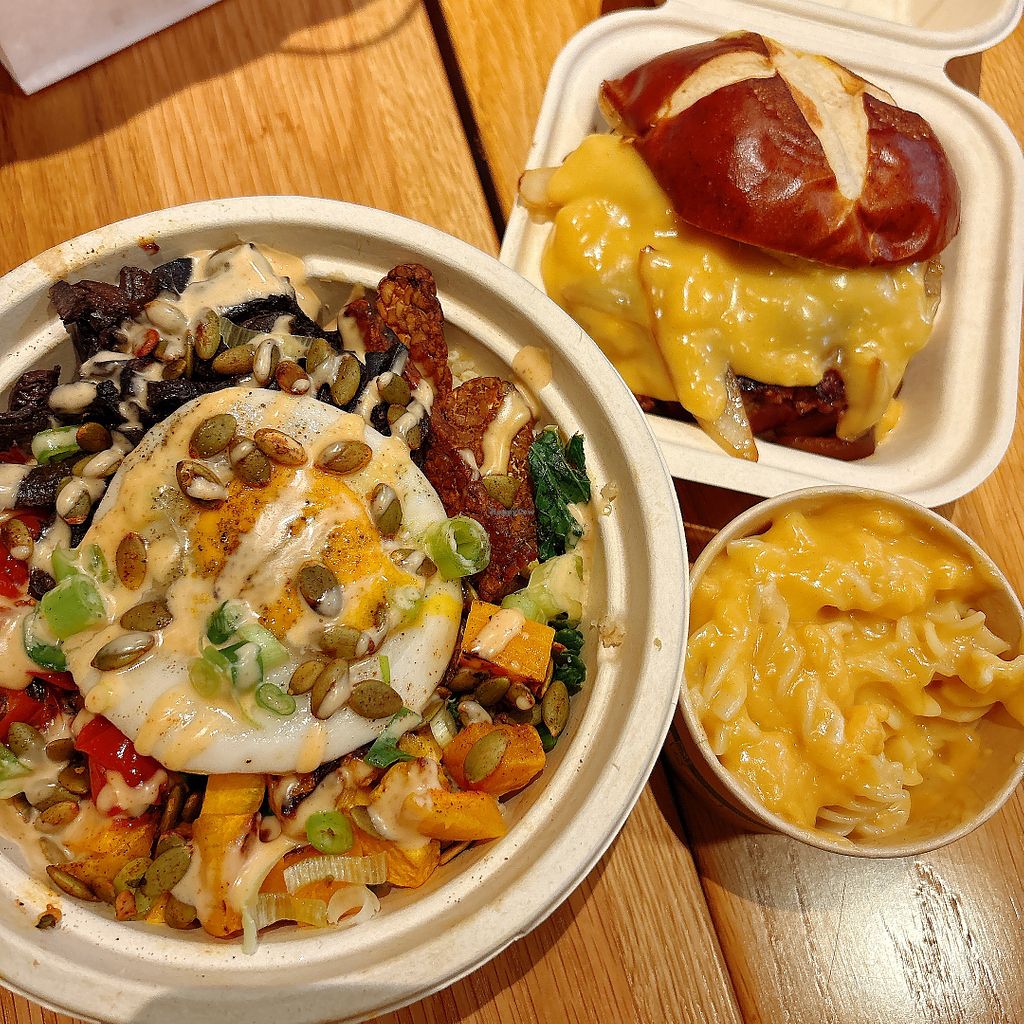 A fantastic spot to satisfy all types of comfort cravings. Whether you want a hearty bowl, burger, or salad, it's got you covered. I ordered the Cali Bowl which is served with the best tempeh I've ever had. The Mac and Cheese is also top notch in terms of likeliness to real cheese. All of my family also enjoyed their burgers and bowls . The service here is very friendly and the background music was surprisingly good as well. Didn't know what to expect but I was pleasantly surprised by the options and how good the food was.