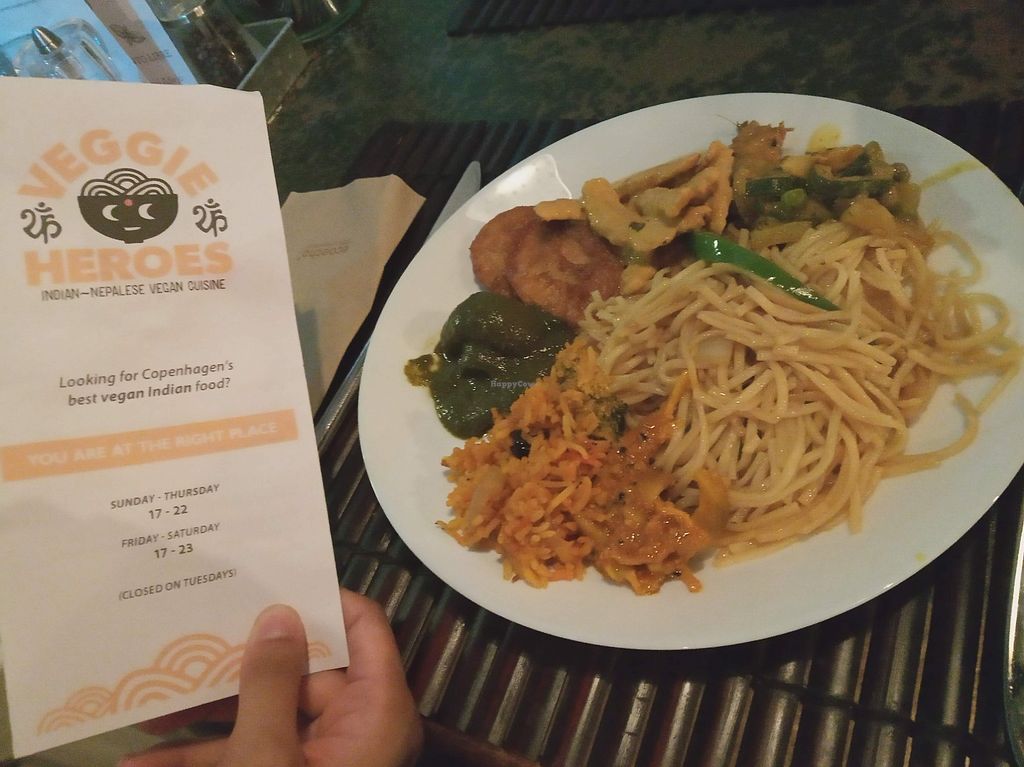 Great restaurant where you can sit both out and inside. Offers all you can eat vegan buffet - various fake meats with vegetables mixtures, sushi, Vietnamese rolls, pineapple fried rice, salad bar... You can also order pho, dim sum and some other items from their menu. Veggie heroes also offer cakes, mochi cakes, Asian beers, non alco drinks... The prices are reasonable, students get a discount for the buffet (down to 98 dkk from 110 dkk). My boyfriend enjoyed the buffet which had so many items to choose from and were all delicious. I had the dim sum dumplings and they were amazing, I must recommend them.