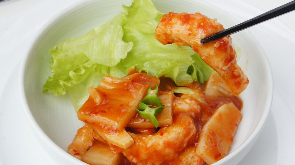 Sweet and Sour “pork" with rice and kimchi