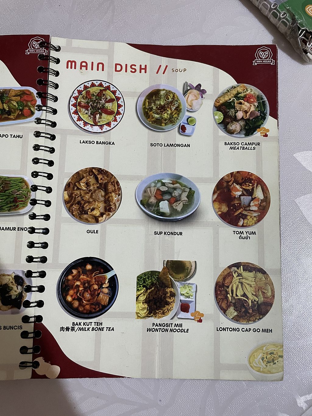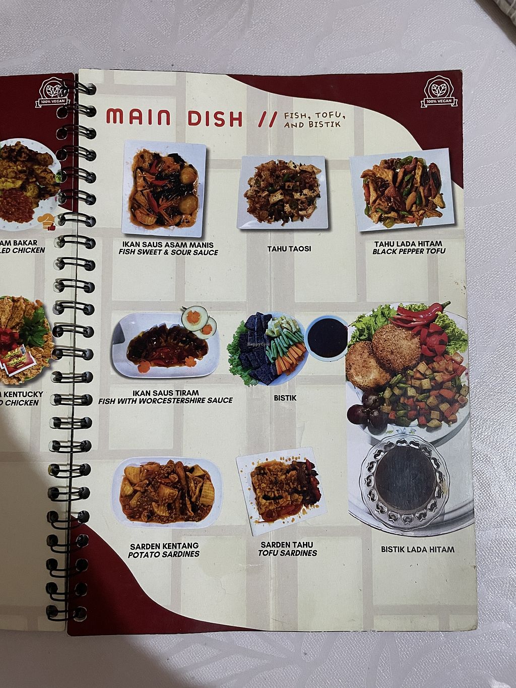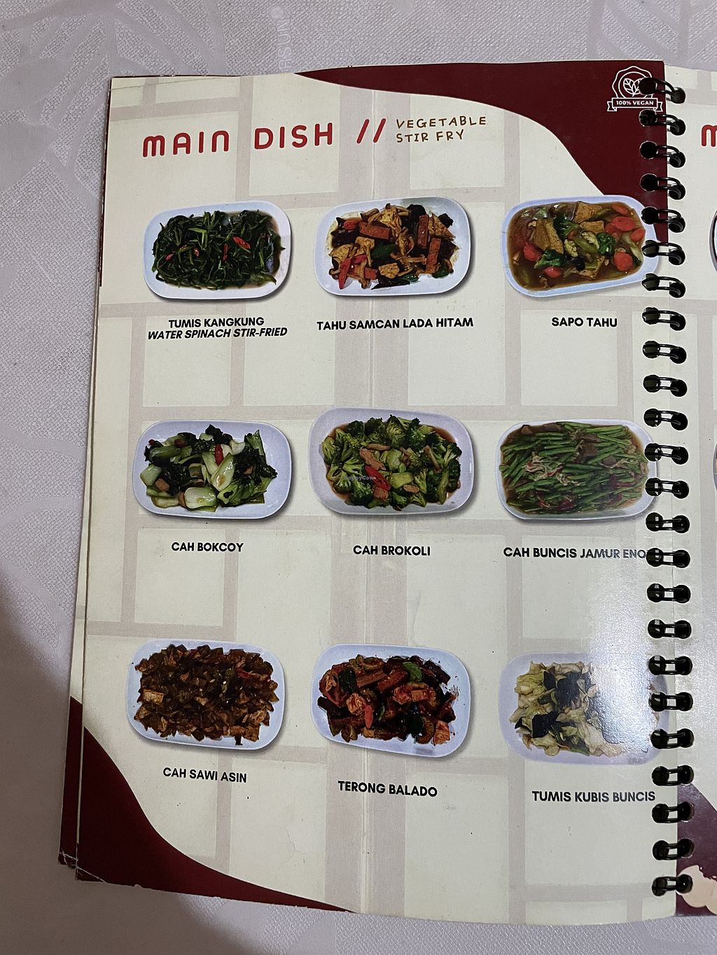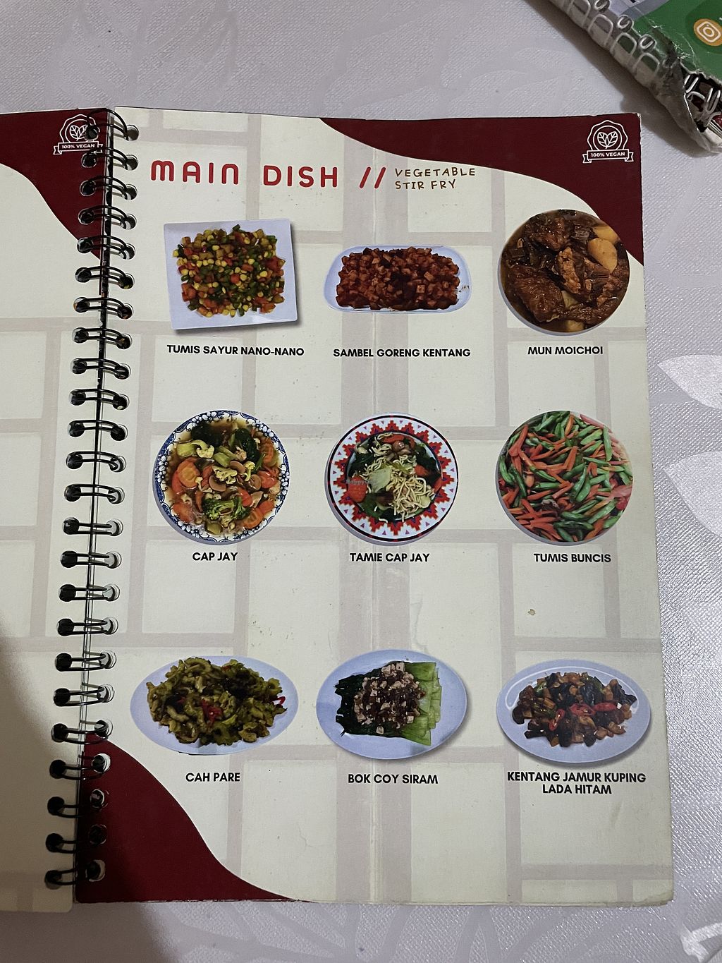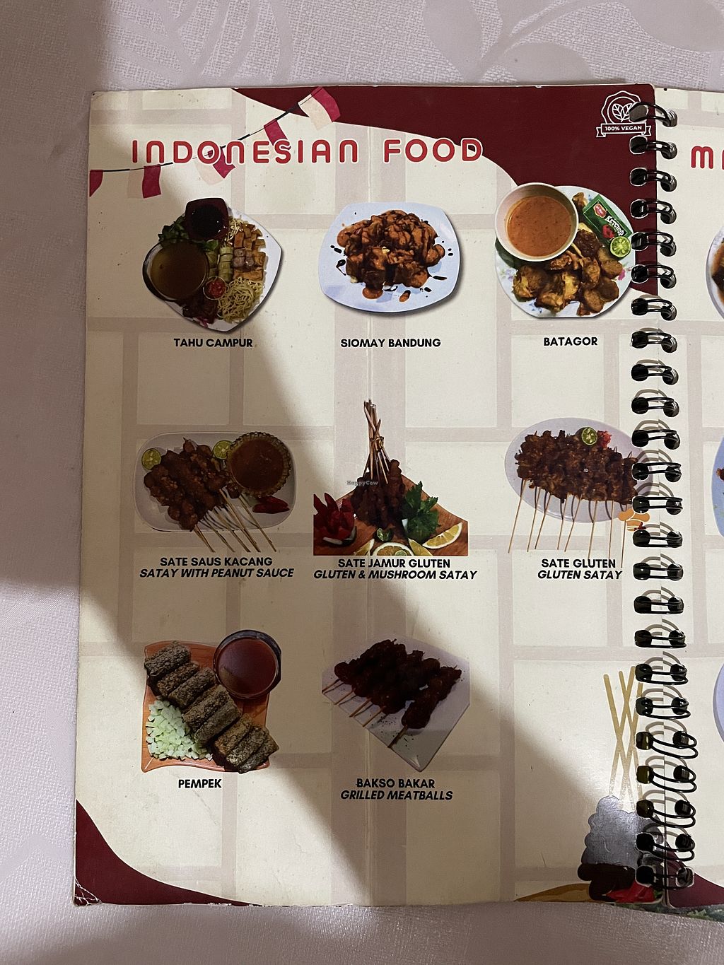 100% vegan and so tasty! The owner is very sweet and worked hard to communicate with us. She can speak some English and Mandarin Chinese but best to use apps to translate to Indonesian for certain requests. Everything we ordered was good, we had the ayam bakar (grilled chkn), black pepper tofu, an eggplant dish, and a bunch of other stuff I forgot. Only the dumplings we got were a bit heavy for our taste, but everything was delicious nonetheless. It will take a bit of time for the food, but it’s worth it. Oh yea, one more thing—when you first to the restaurant it might look closed so just ring the bell so they come move the counter thing for you to go inside. Also no AC, but has a fan. If she opens the door to the balcony it will be a bit loud.