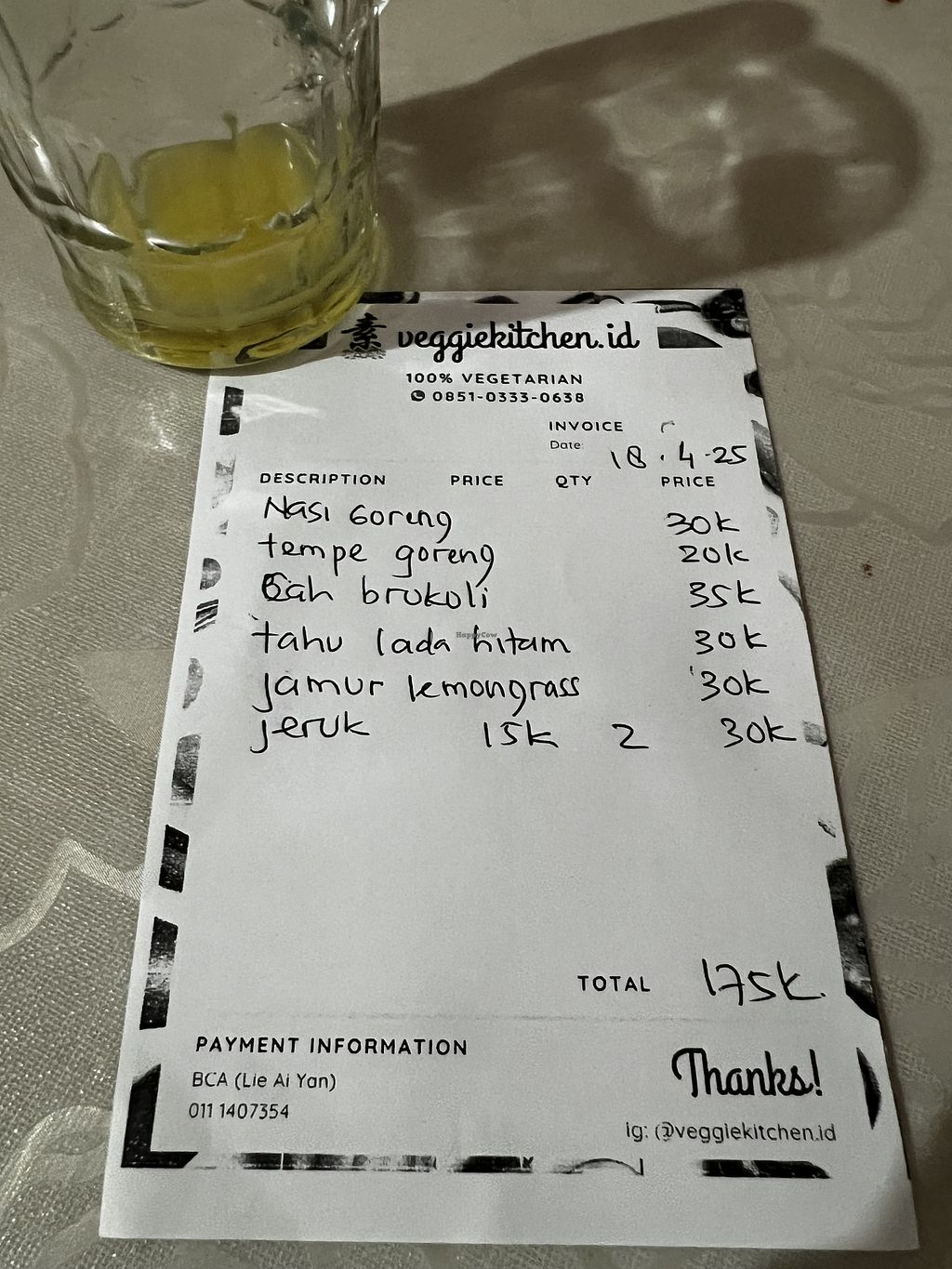 Cah brokoli. Loved all of it and will be back soon. Best vegan place we ate so far in Indonesia. Lovely host and she likes to make a picture of you to put on the wall😄 Cheap, delicious and all vegan.
