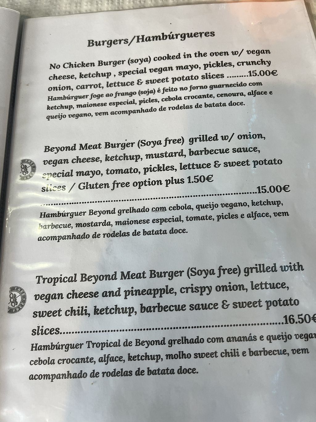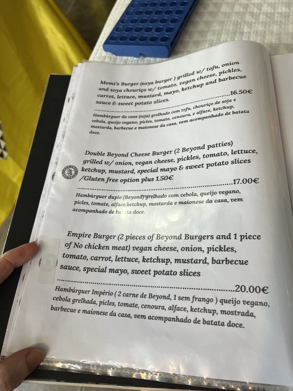 The food was super delicious. We had the momi burger which we loved. As a dessert we had a Pastel de Nata. We were so happy that we could try a vegan pastel de nata.