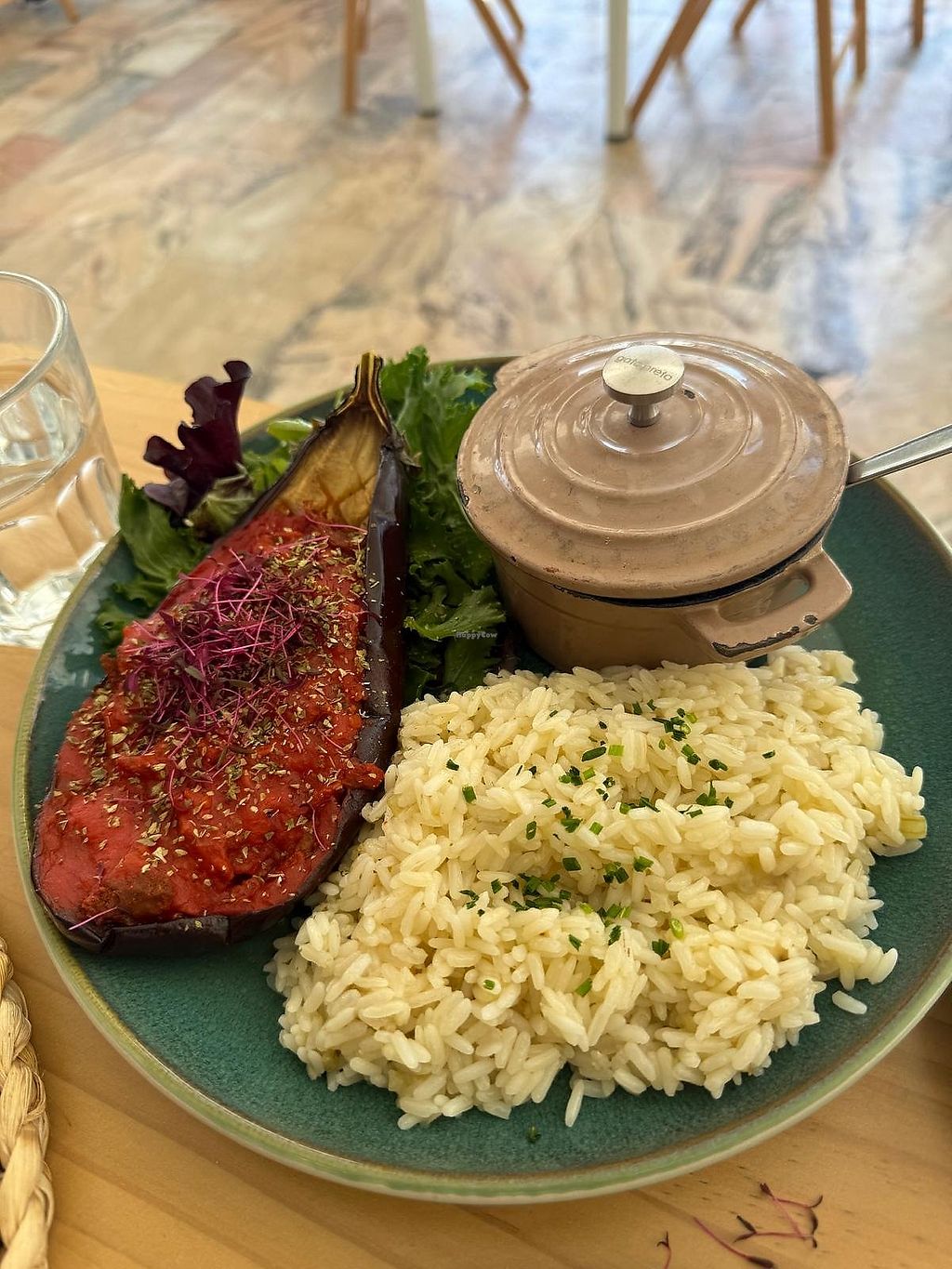 Mushroom ‘omelette’ with rice and salad
