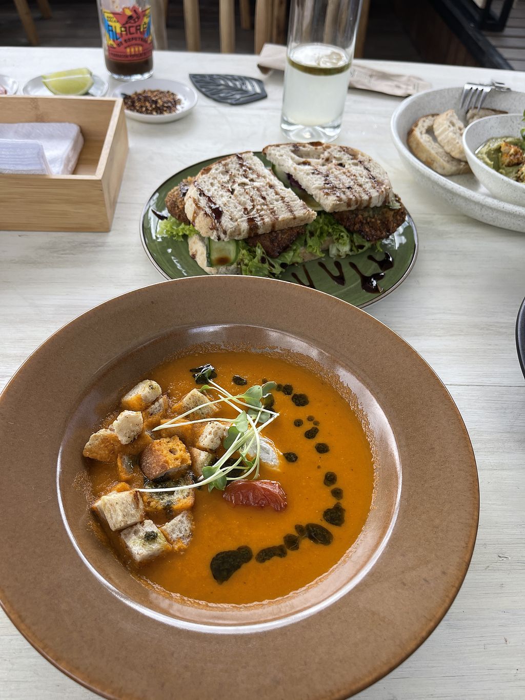 A cafe specialises in brunch, serves vegan hash browns with mushrooms and avocado, soups, curries, sandwiches, juices, and desserts. Reported closed January 2024.