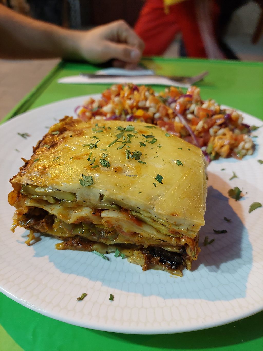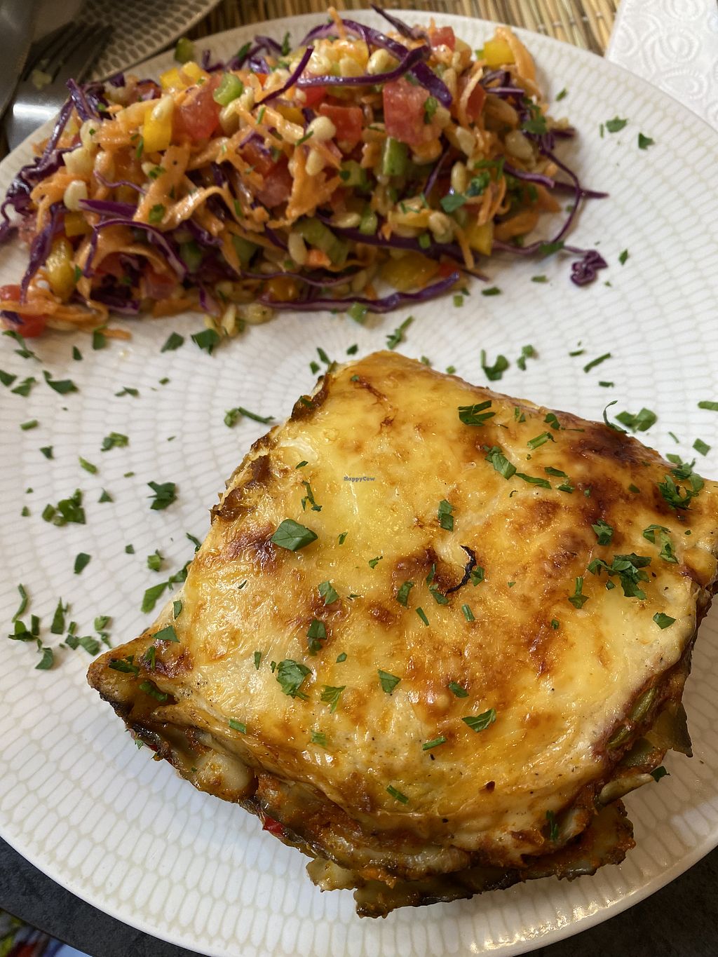 Vegetarian Lagsange with salad (ebly, red cabbage, onions, cucumber, t…