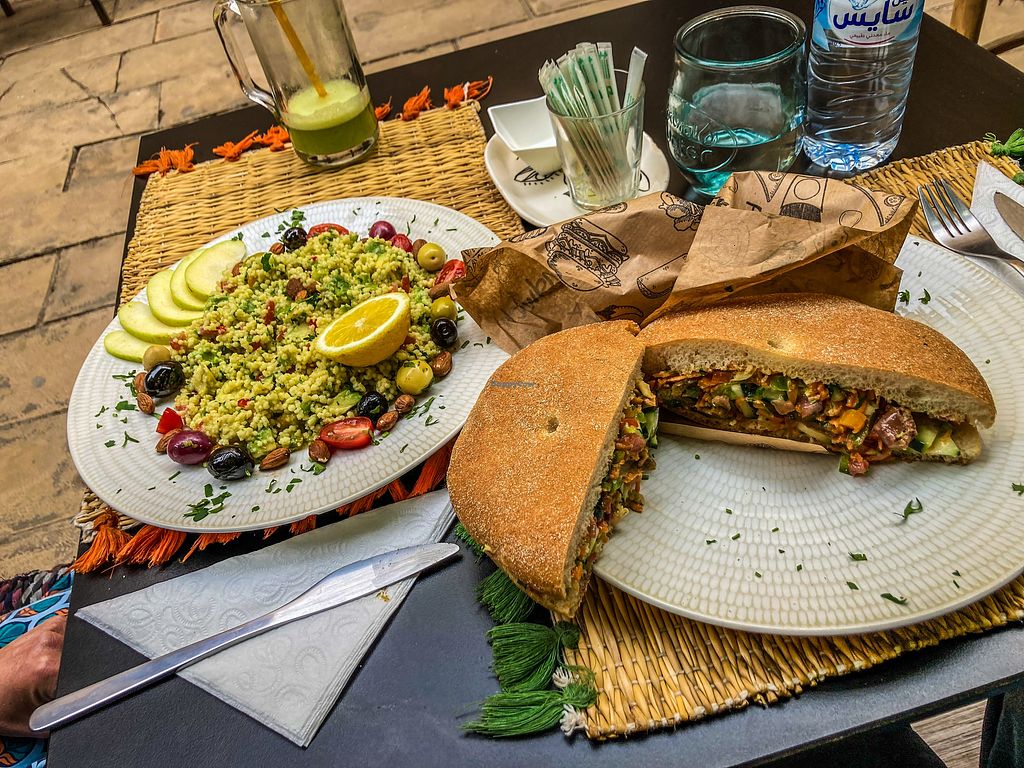 Morroccan Lasagna (vegetarian) with mixed salad (90 MAD)